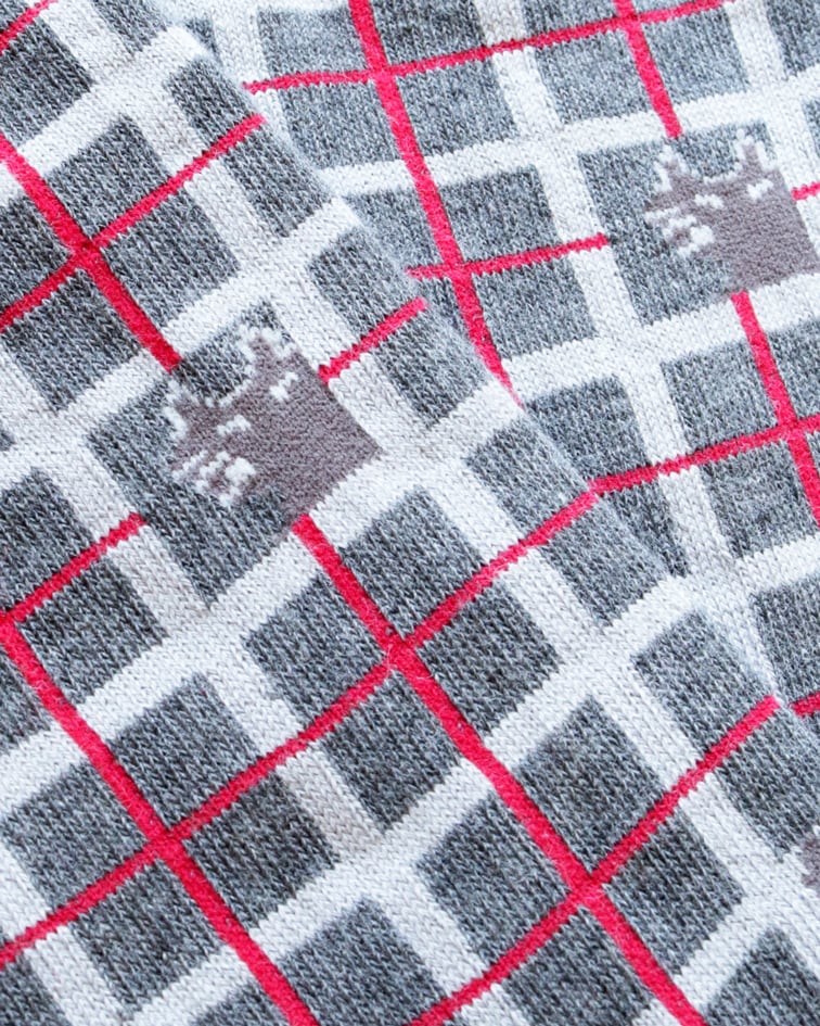紳士用カジュアルソックス、クルー丈。チェックの中にねこが隠れているデザインです。