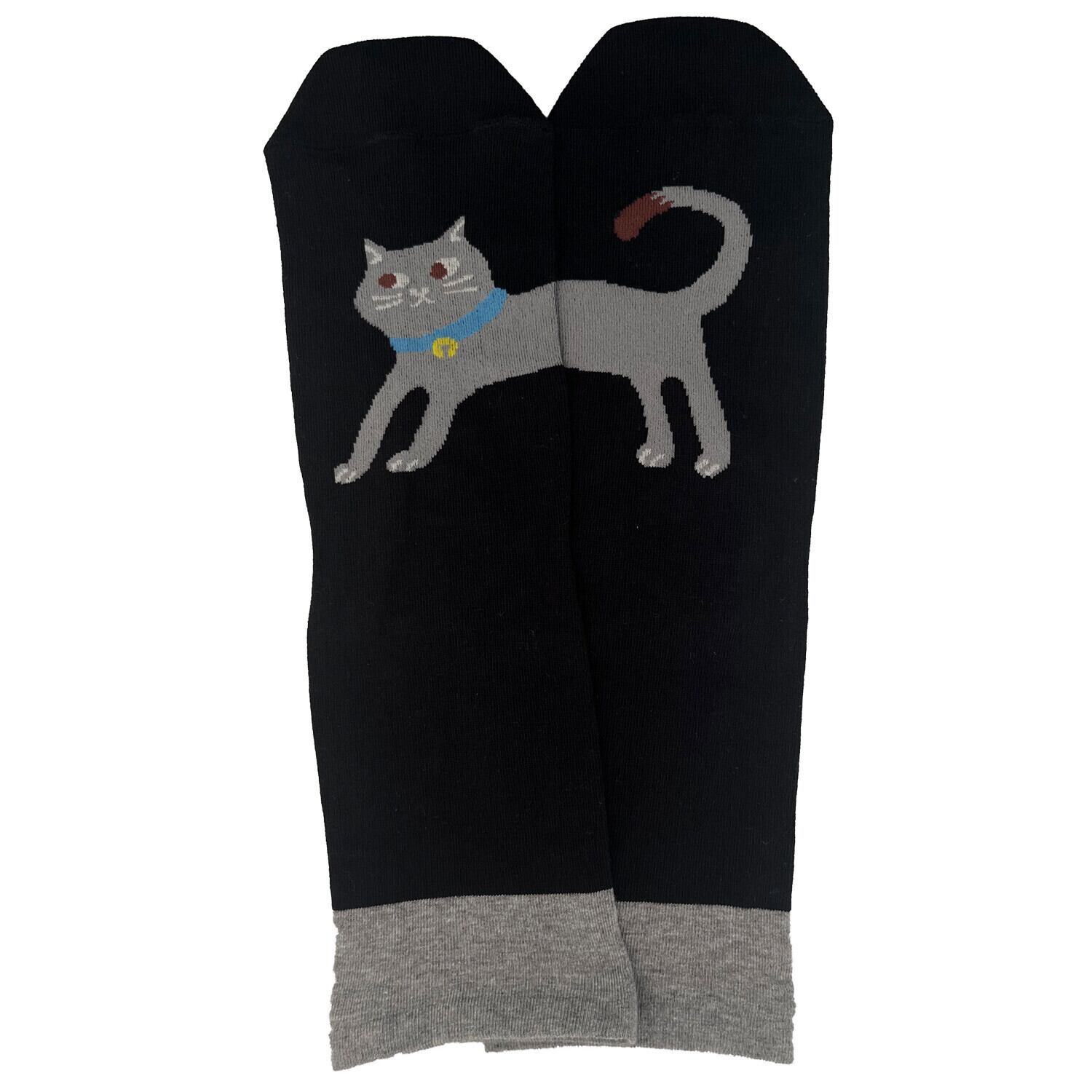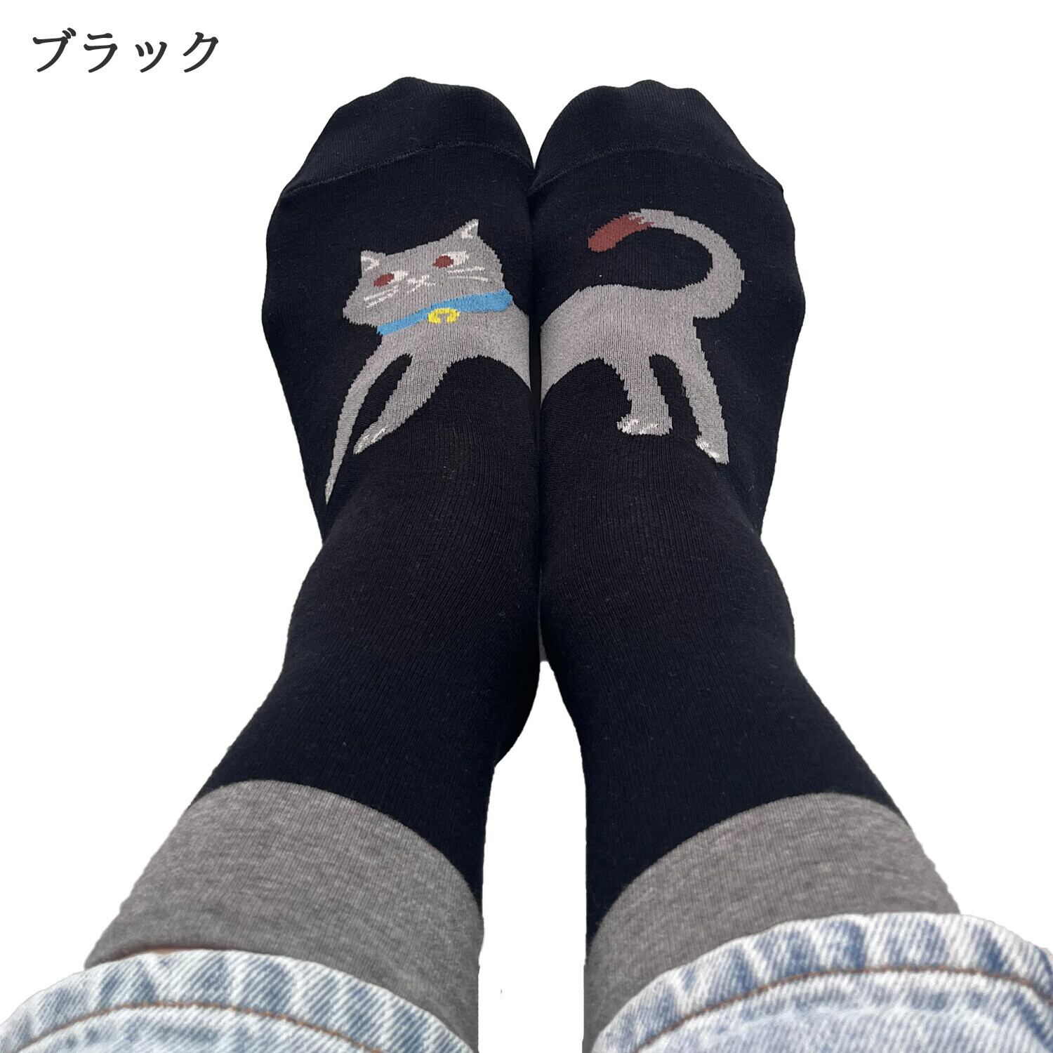 靴下/左右でねこちゃん/ブラック