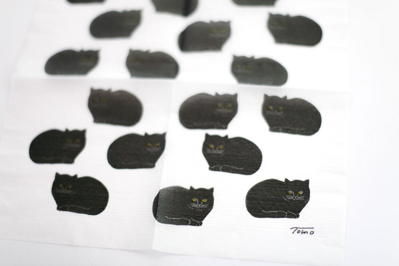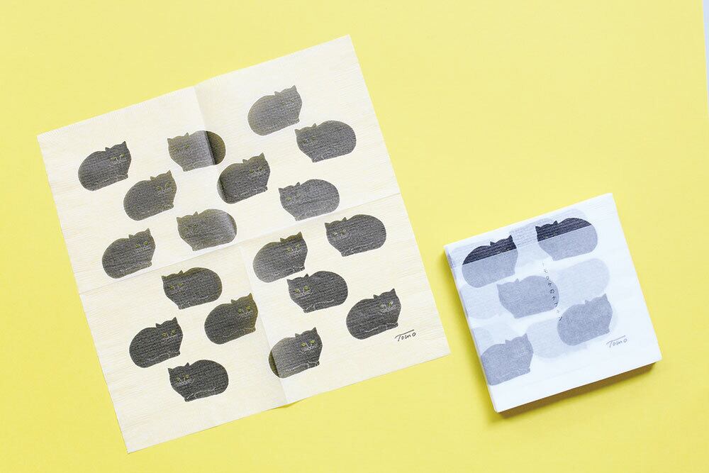 実際に泥染された布を原画として版を作り、凸版印刷で仕上げられたデザインの紙ナプキン。