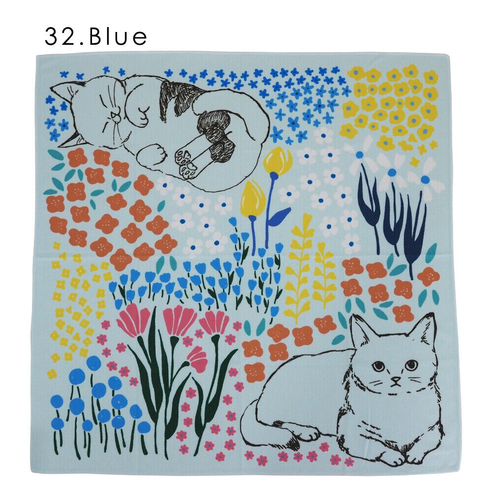 猫柄の接触冷感ひんやりスカーフ。水に濡らせばひんやり感がアップします。