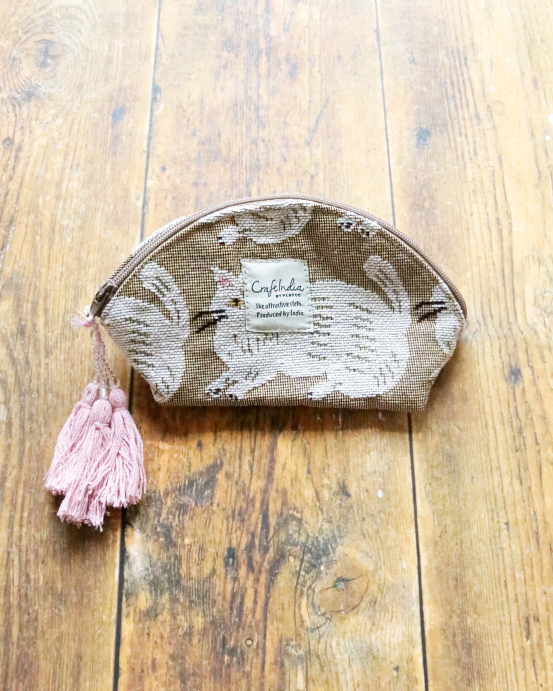 ジャカード生地ならではの風合いを楽しめるミニポーチ。リップやイヤホンなど小物をすっきり収納できます。バッグの中でも見つけやすい存在感のあるデザイン。手のひらサイズの可愛い相棒です。
