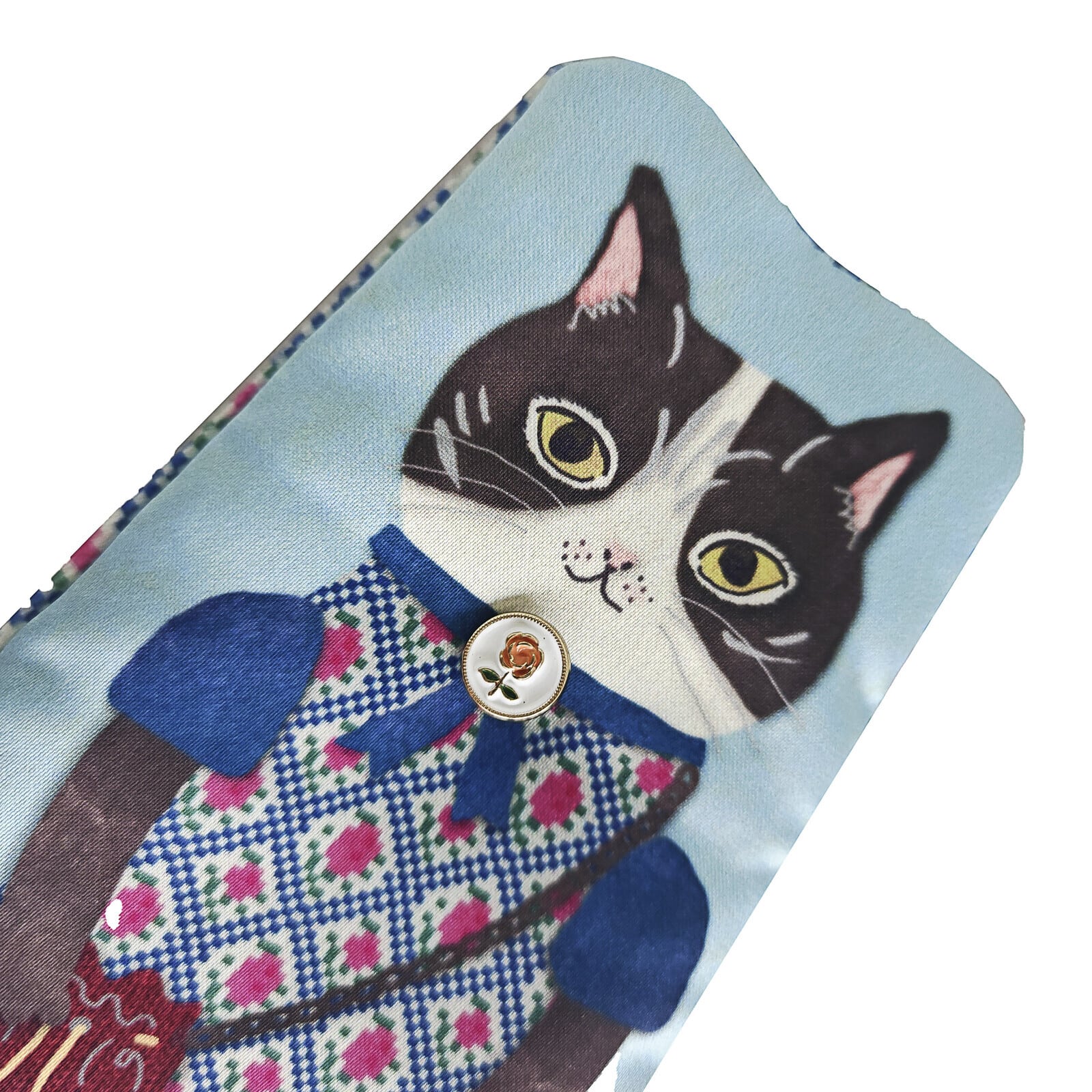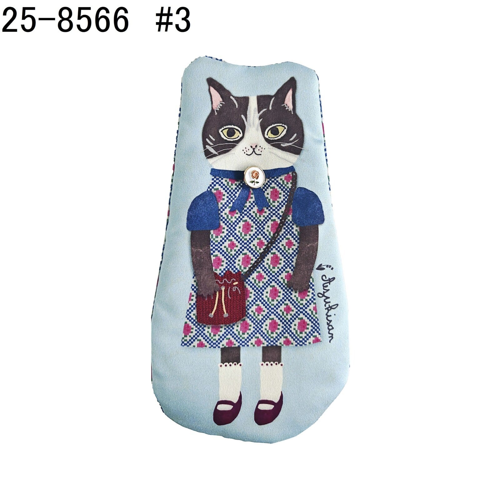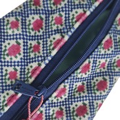 どことなくノスタルジーを感じさせるシャビーシックな色合い。艶のあるサテン生地に包まれた手書き感のある『おめかしさんたち』。ファスナー側のレトロ風なプリントにもこだわりました。少しだけ中綿が入っているのでふんわり感があります。永遠の女子達に贈るキュンとさせたいポーチです。