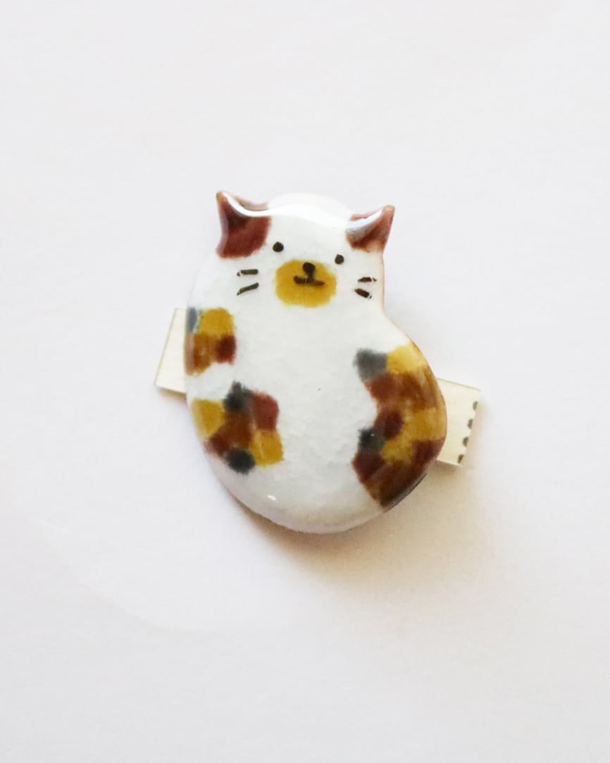 ブローチ/もちネコ/七宝焼き/あとりえここり