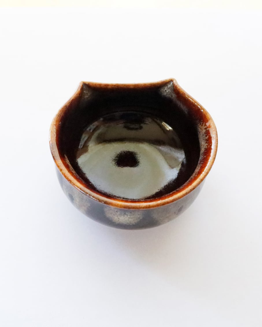 猫顔型のぐいのみ。薬味入れやアクセサリー入れにもおすすめです。