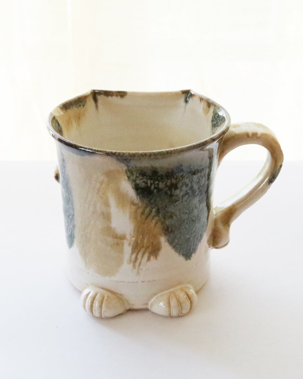 宮城に工房を構えるATELIER kijinさんのマグカップ。猫のシルエットがモチーフのオリジナル陶器です。尻尾や前脚もついていて、まるで猫が座っているようです♪