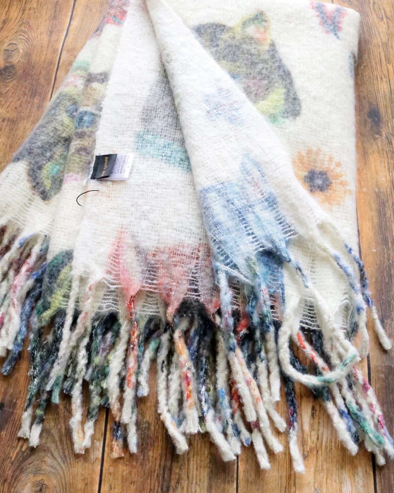 やさしい色合いと遊び心あふれるデザインが、毎日の暮らしにそっと彩りを添えてくれる一枚。贈り物にもおすすめの、心温まるブランケットです。