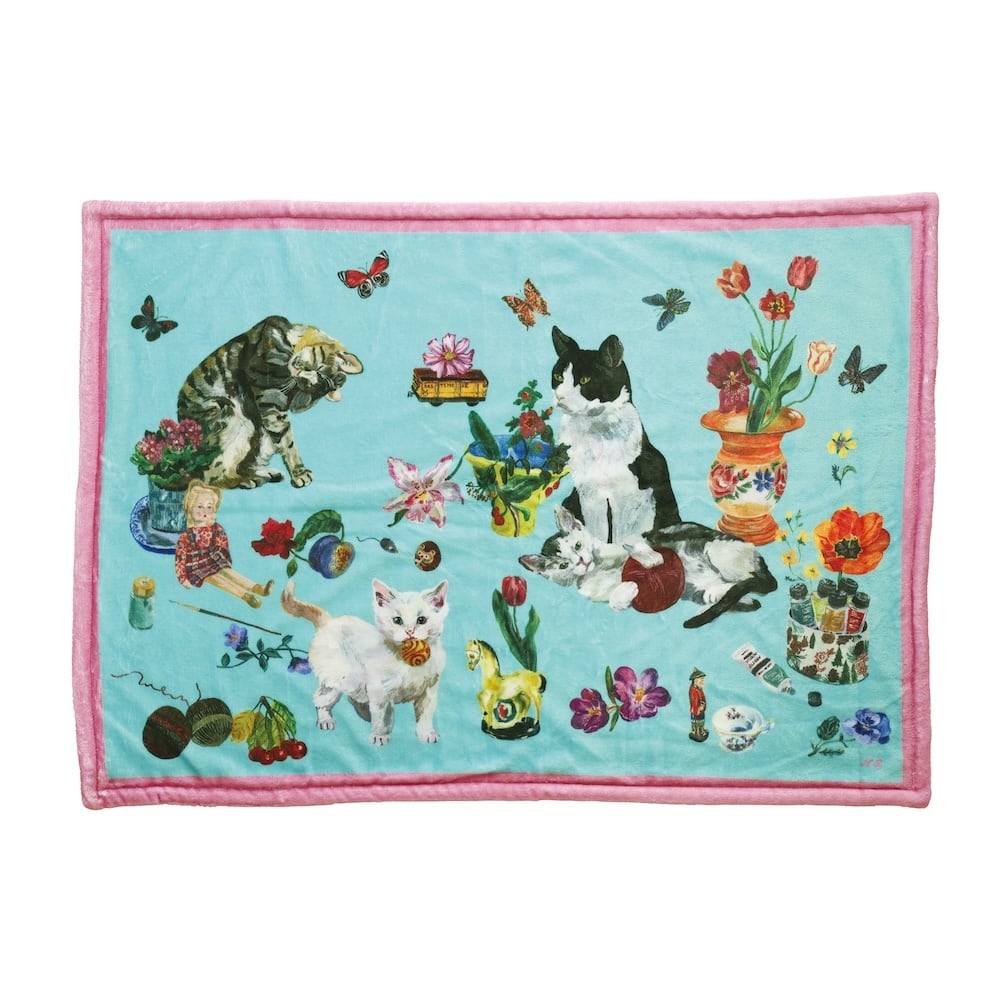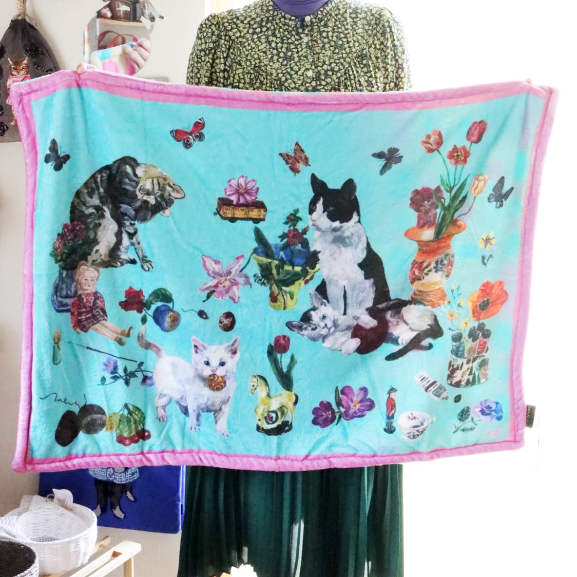 ブランケット/Double layer Blanket Cats-Mint green/ナタリーレテ/Nathalie lete
