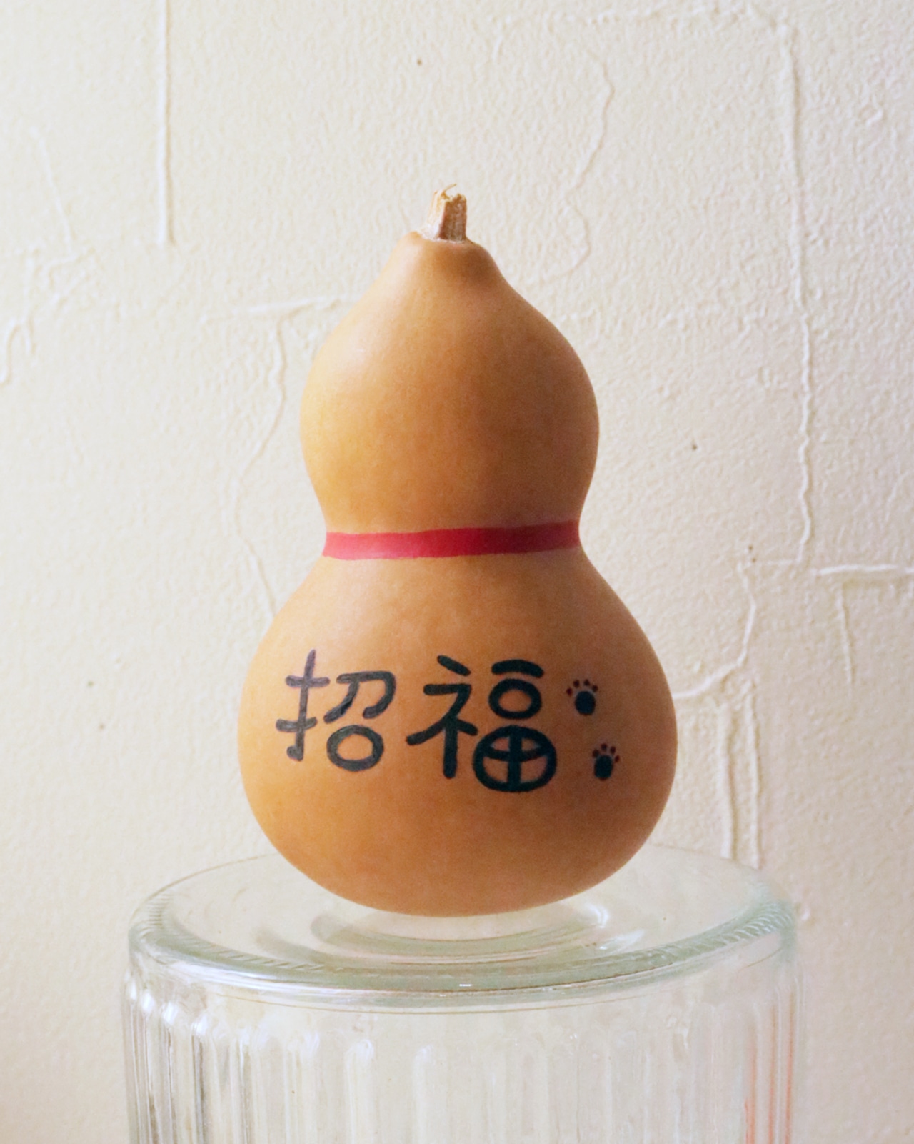 縁起の良さそうな可愛いひょうたん。裏面には、招福のメッセージが描かれています。