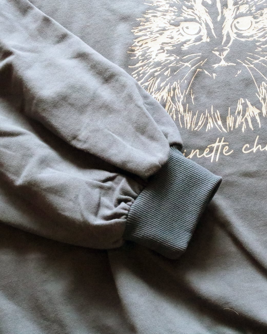 胸元に描かれた繊細なタッチの猫のイラストが、シンプルなデザインに遊び心をプラスしています。程よくゆとりのあるシルエットとドロップショルダーで、肩の力を抜いたナチュラルな着こなしが楽しめます。少し膨らんだビショップスリーブも可愛いです