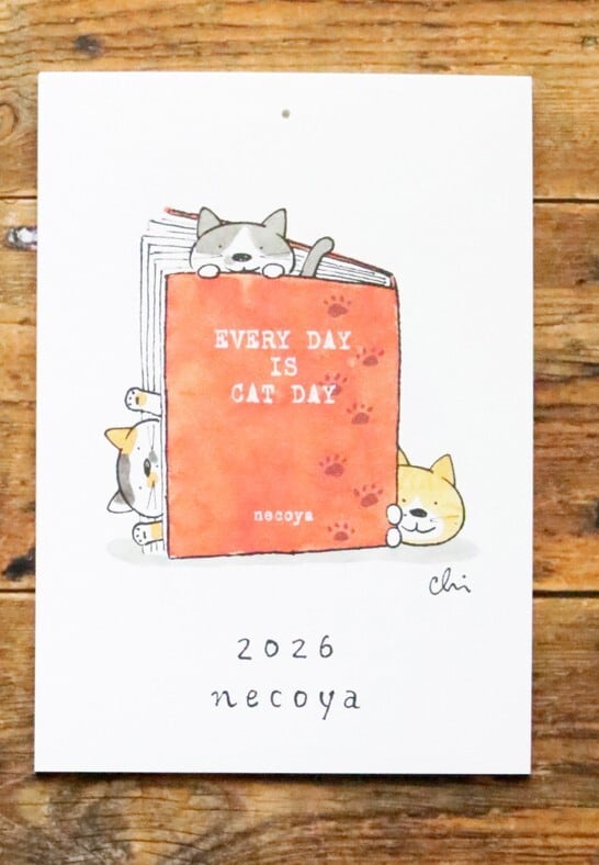 「EVERY DAY IS CAT DAY」ほのぼの可愛いにゃんきーとすとともに楽しい一年を過ごせそうです。カレンダー上部には穴が開いておりますので紐を通して吊り下げられます。