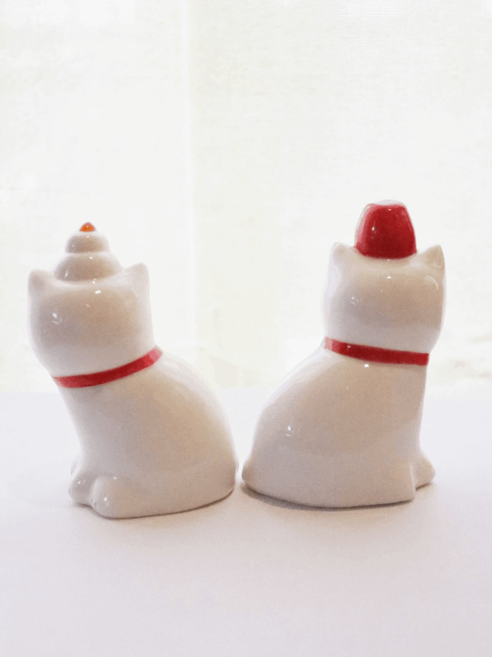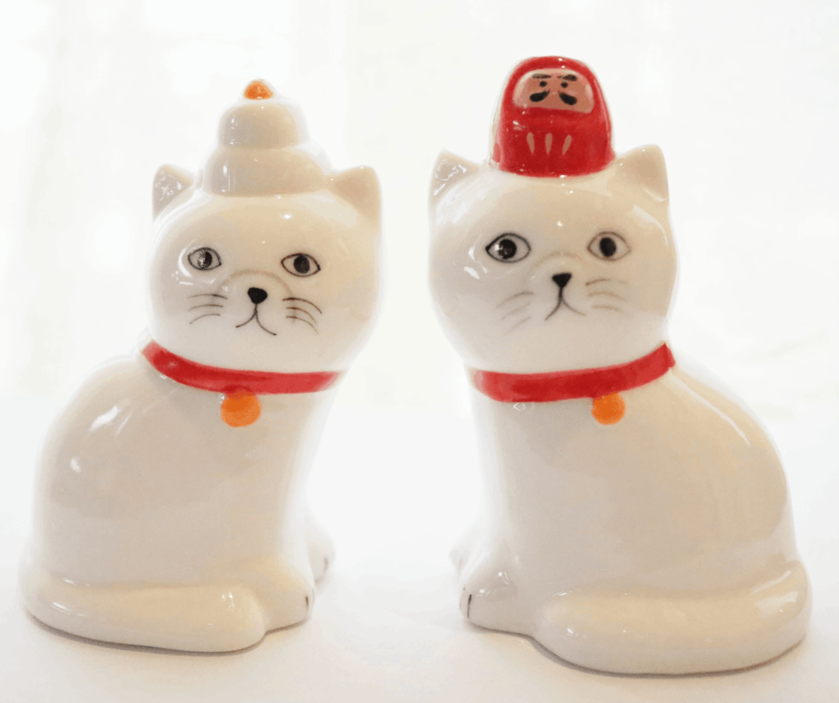 磁器製の、2匹の猫が並ぶ愛らしいお正月オブジェです。