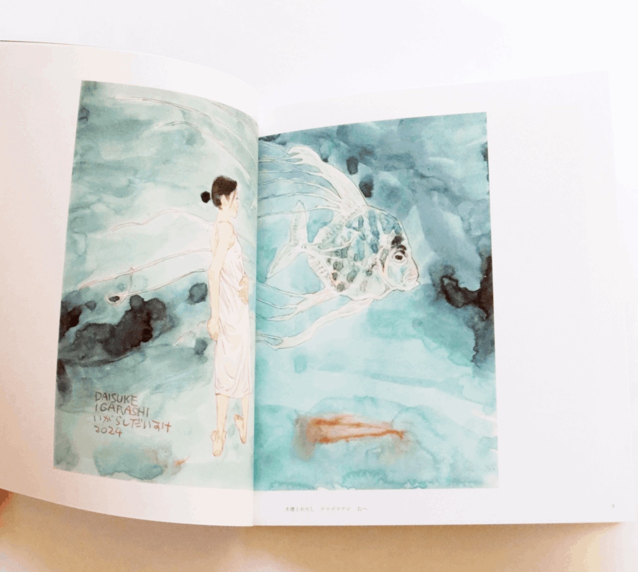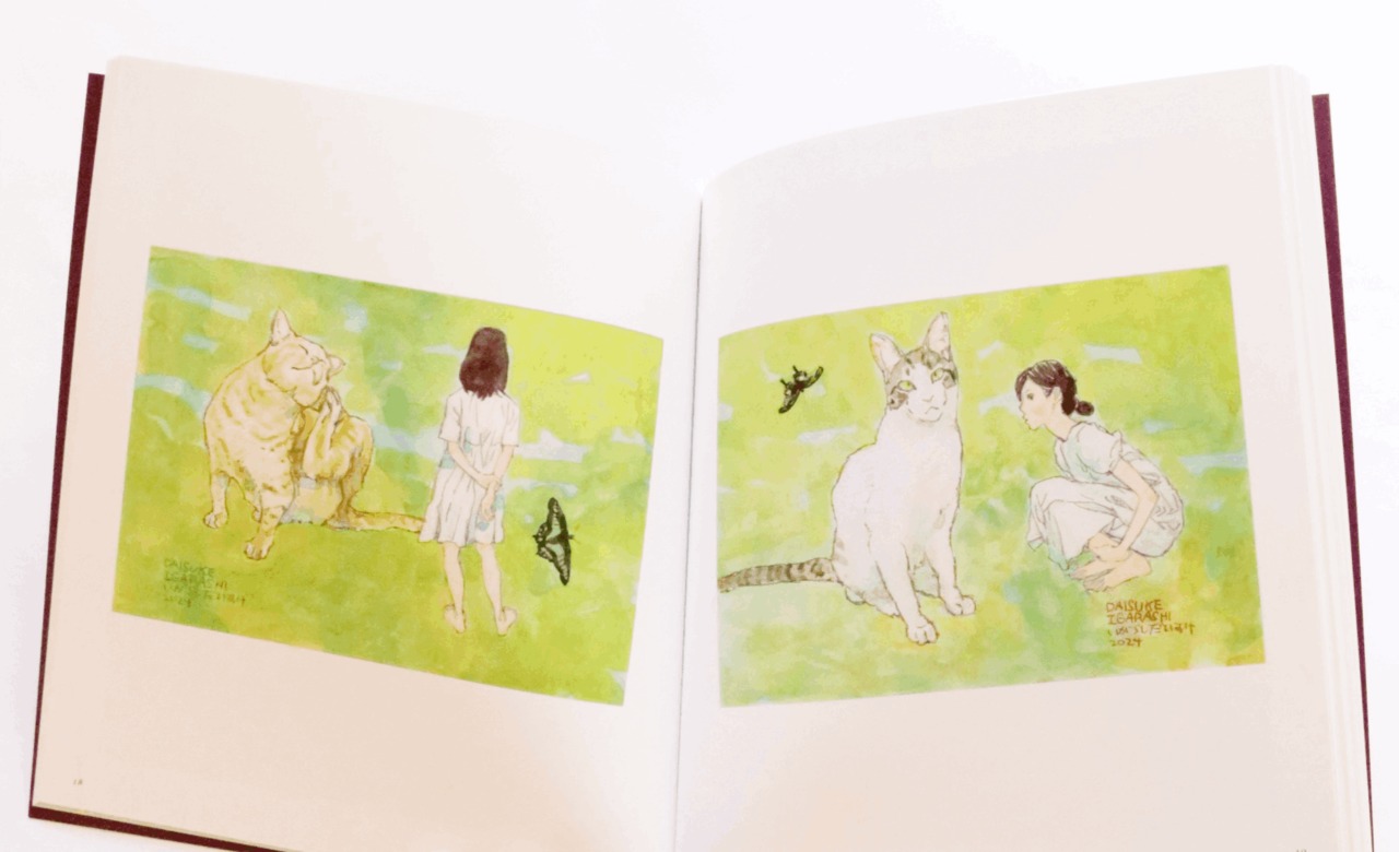 2024年に、絵本『ねこまがたけ』発刊記念として開催された、原画展での描き下ろし作品が1冊の作品集になりました。鮮やかな色彩と柔らかな線で、水の中の世界と、猫と過ごす優しい時間が描かれています。