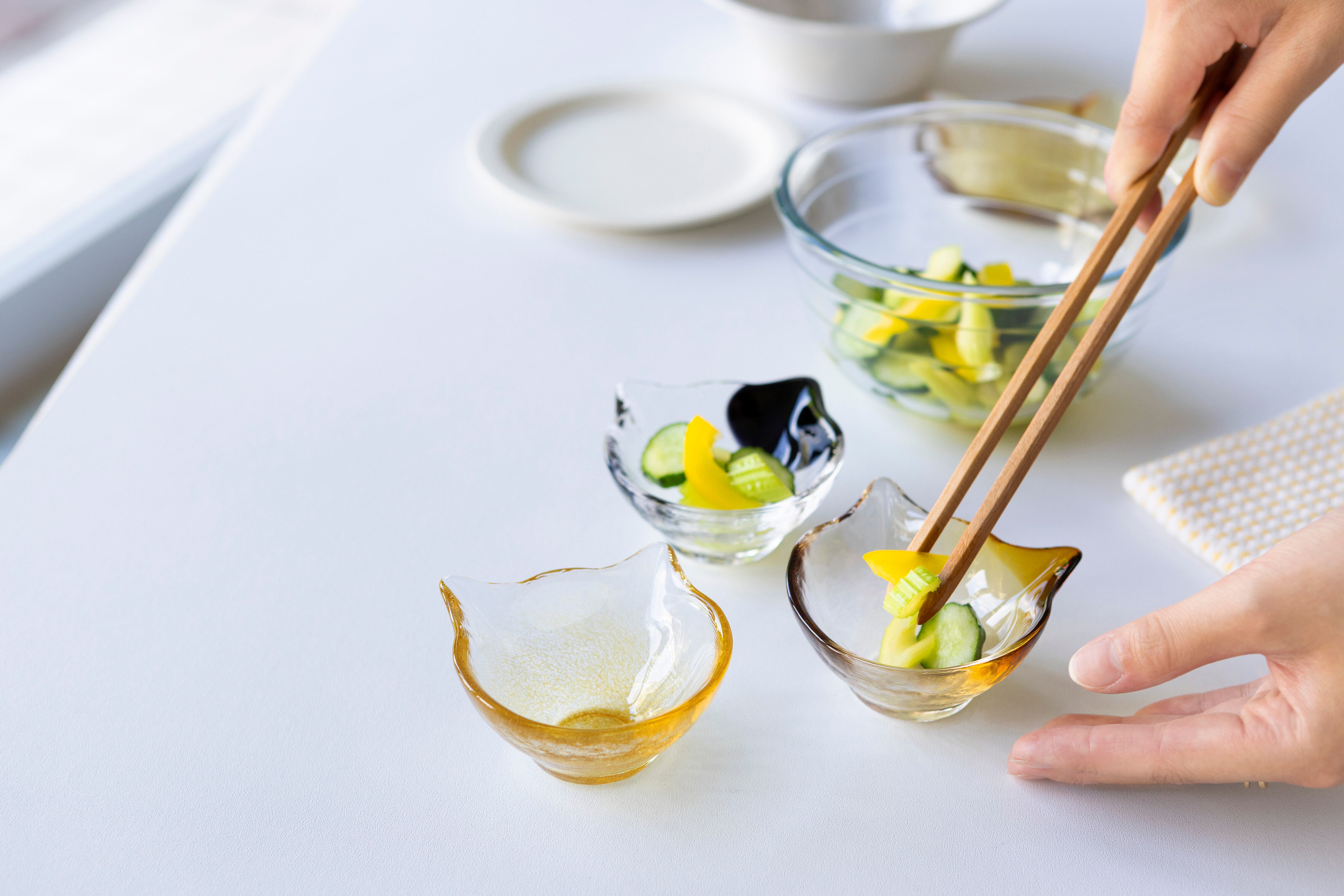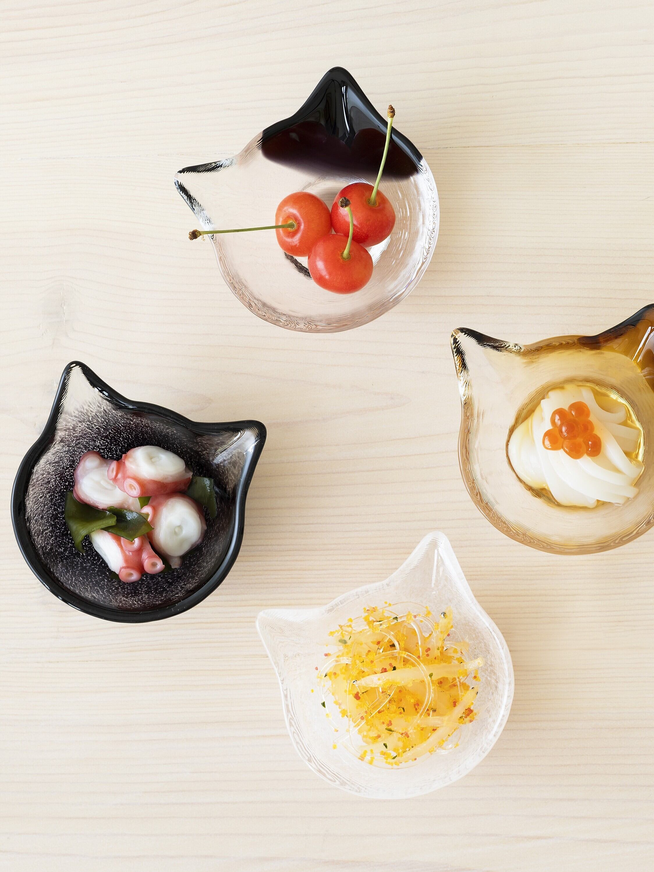 ネコ好きのガラス職人が一つ一つ丁寧に手作業で作り上げるココネコのガラスのお皿。お皿のシルエットが猫のデザインで、見た目にもかわいらしく仕上げました。