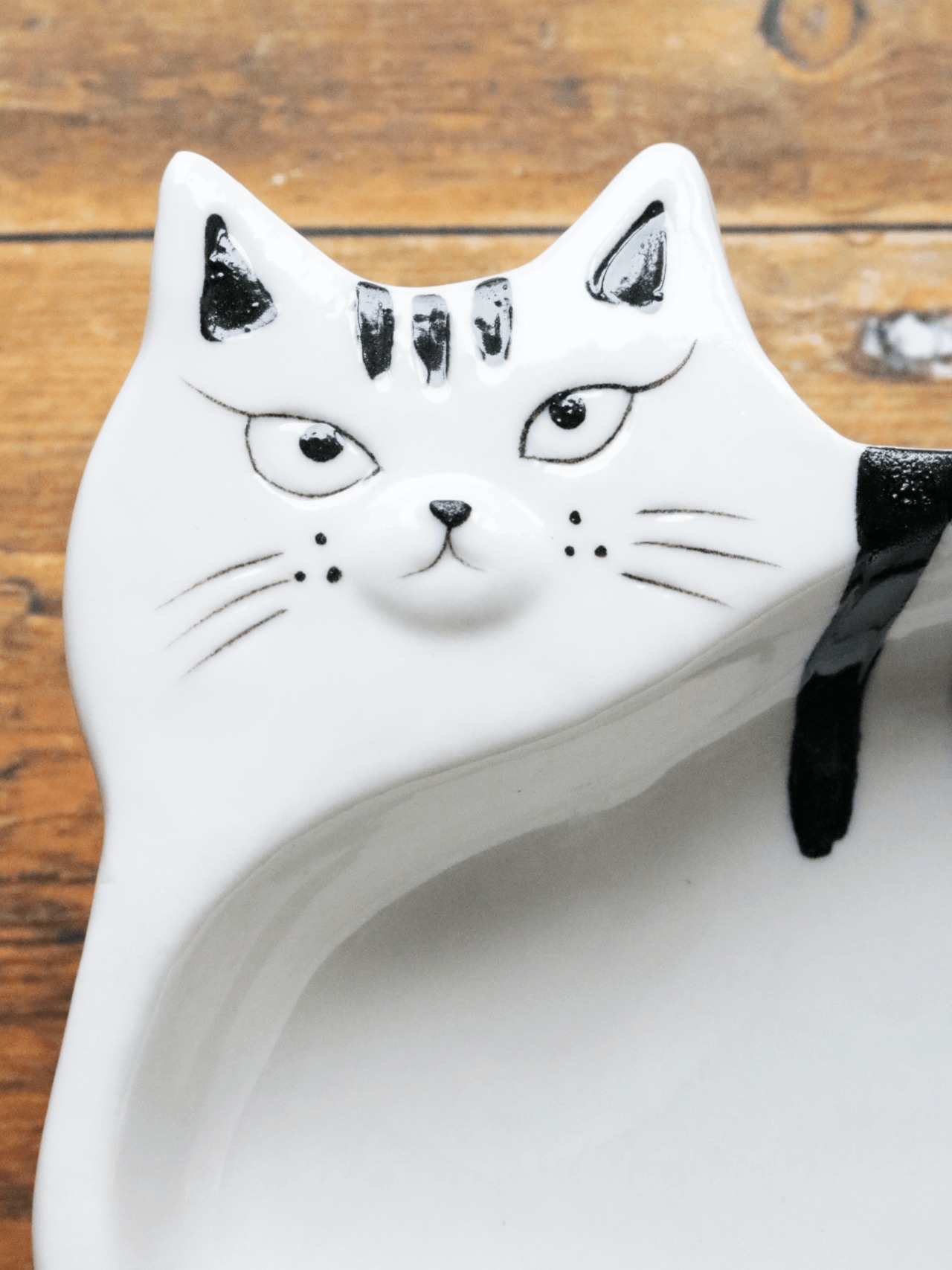 艶のある黒の釉薬で仕上げた表情は、ひとつひとつ手作業で描かれたもの。どこかとぼけたような、ふと笑みがこぼれるような佇まいに、思わず目が留まります。