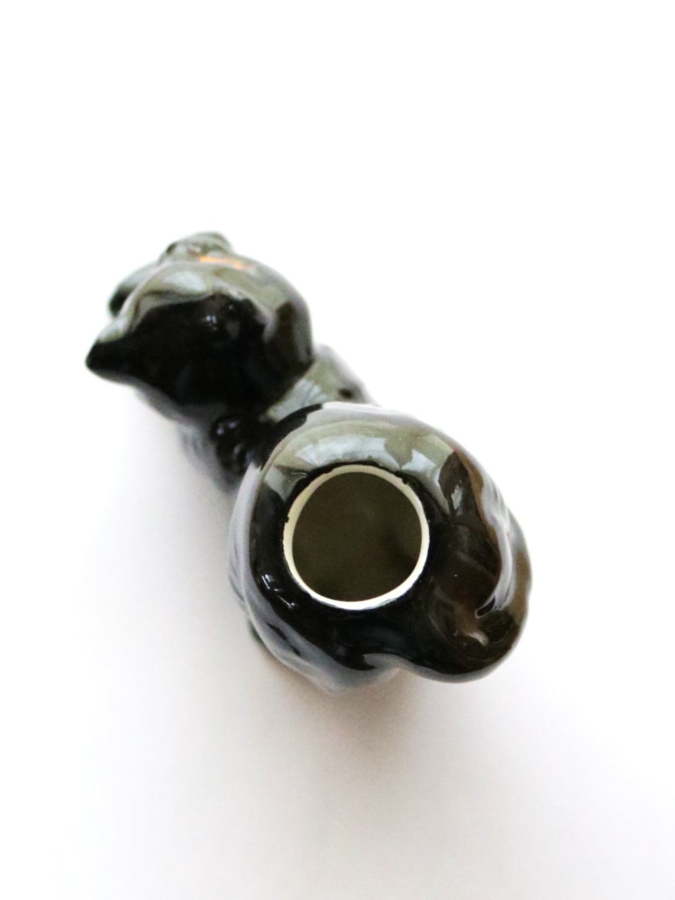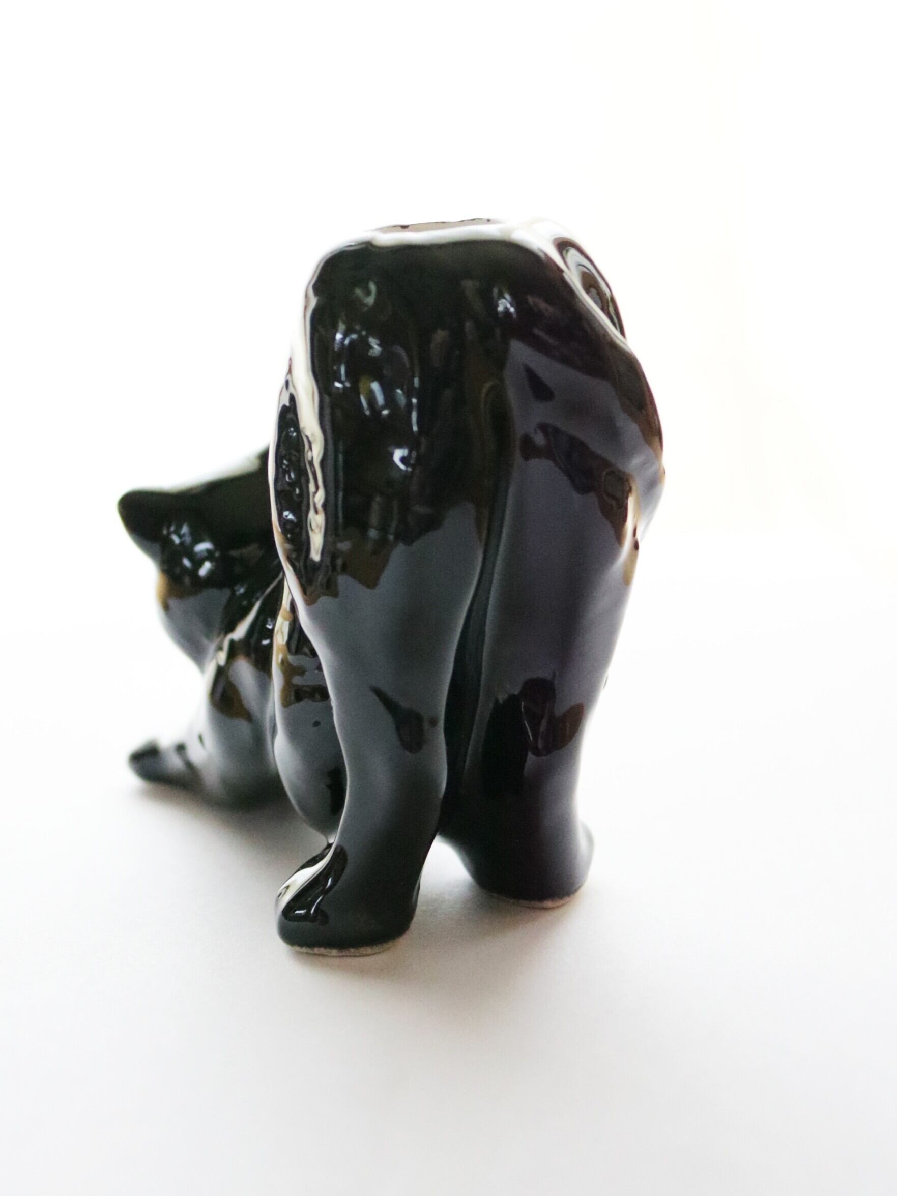 のび~っと可愛い猫の姿がおしゃれなオブジェになりました。一輪挿しやペン立てとしてもお使いいただけます。全部で3種類ございます。こちらは黒猫さんです。