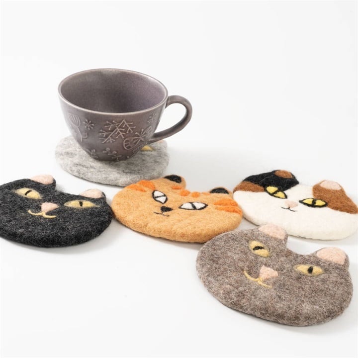 ハンドメイドならではのあたたかみを感じるフェルトのコースター。お揃いで鍋敷きもあります。