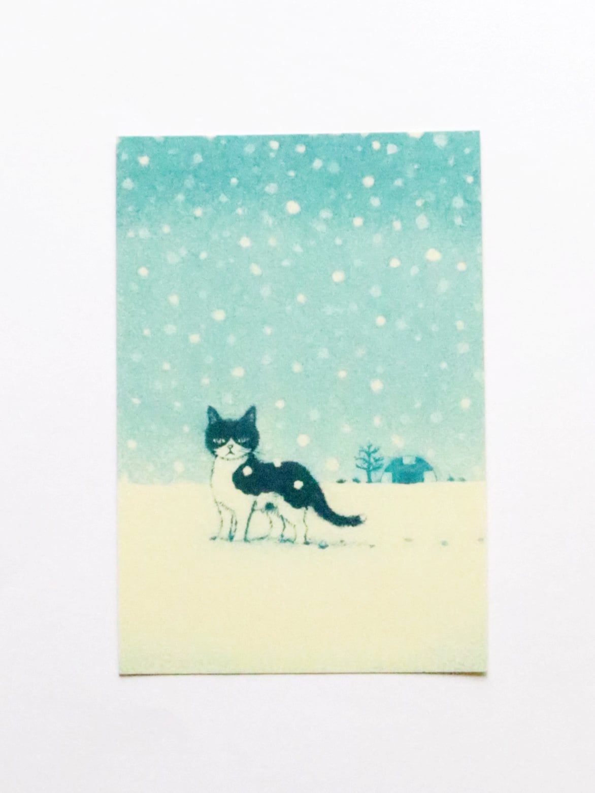 紙版画の原画作品を印刷した、坂本千明さんのポストカード