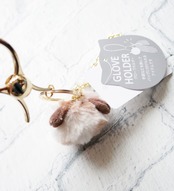 ころんと丸いファーの猫。手袋を挟んで、バッグなどに付けておけるグローブホルダーです。
