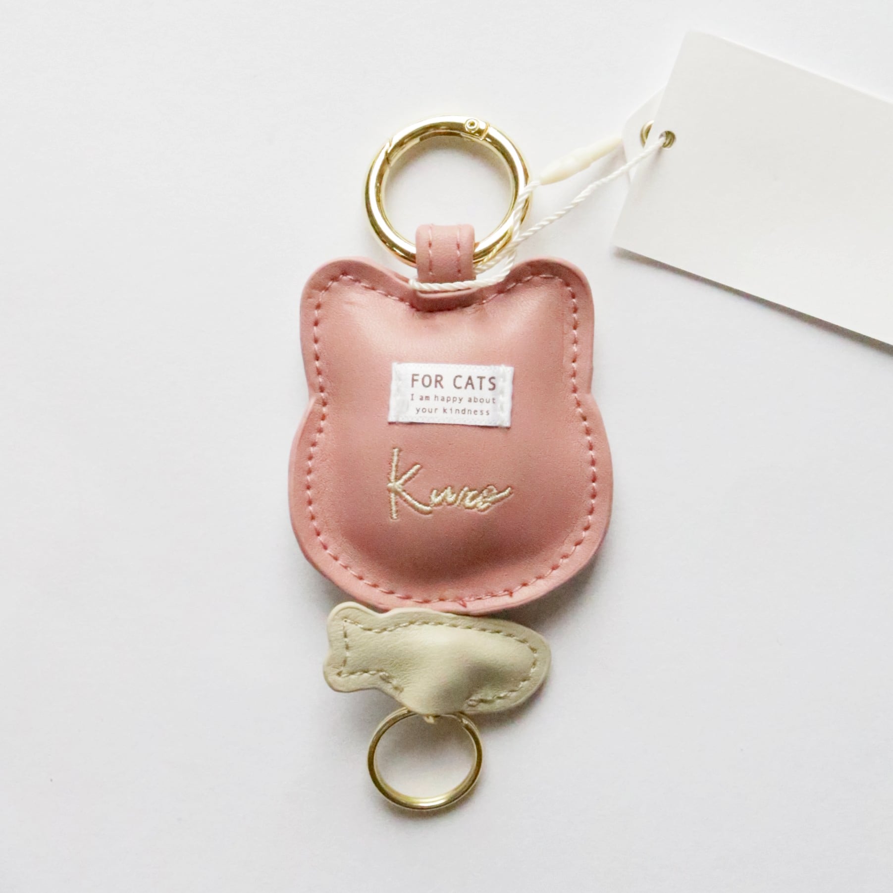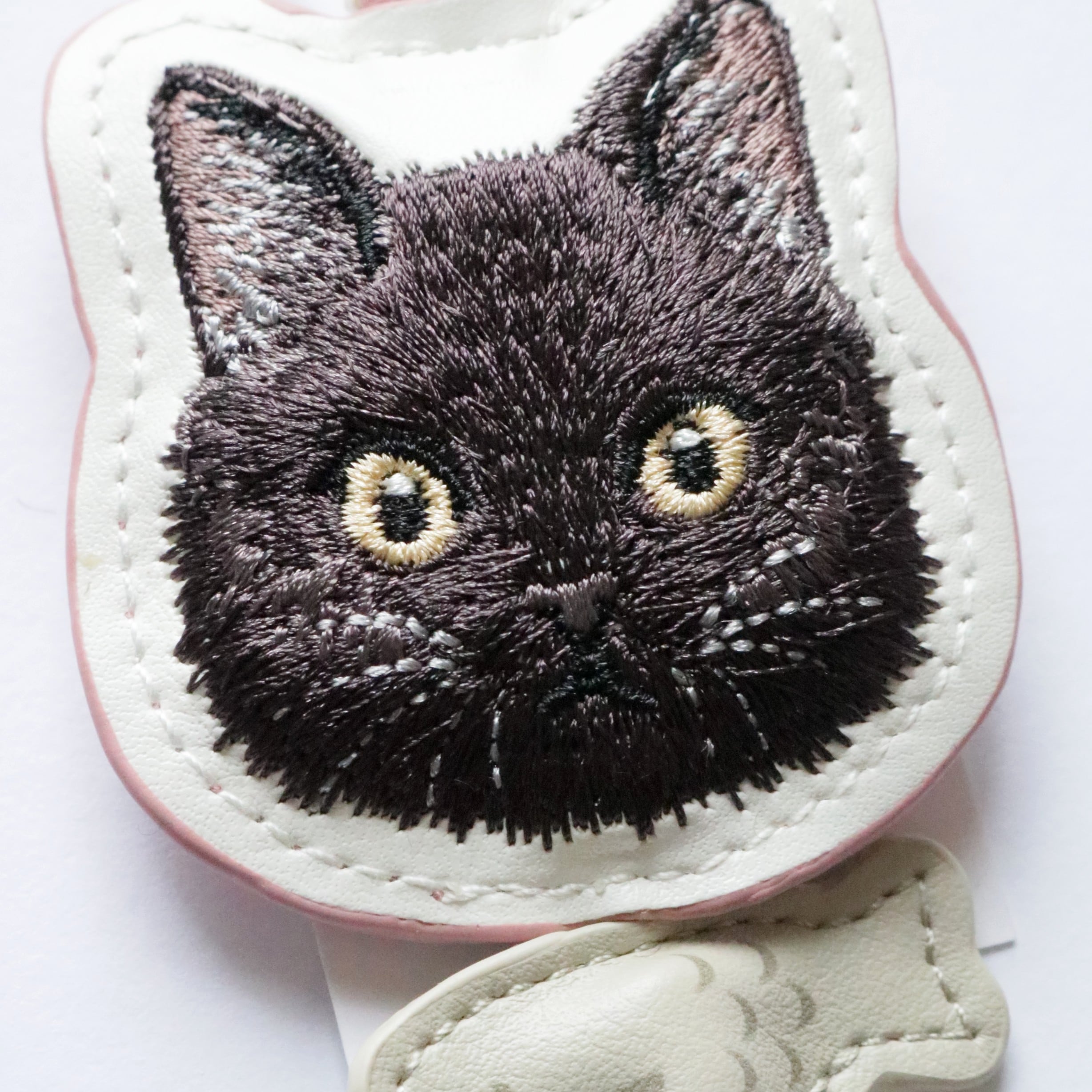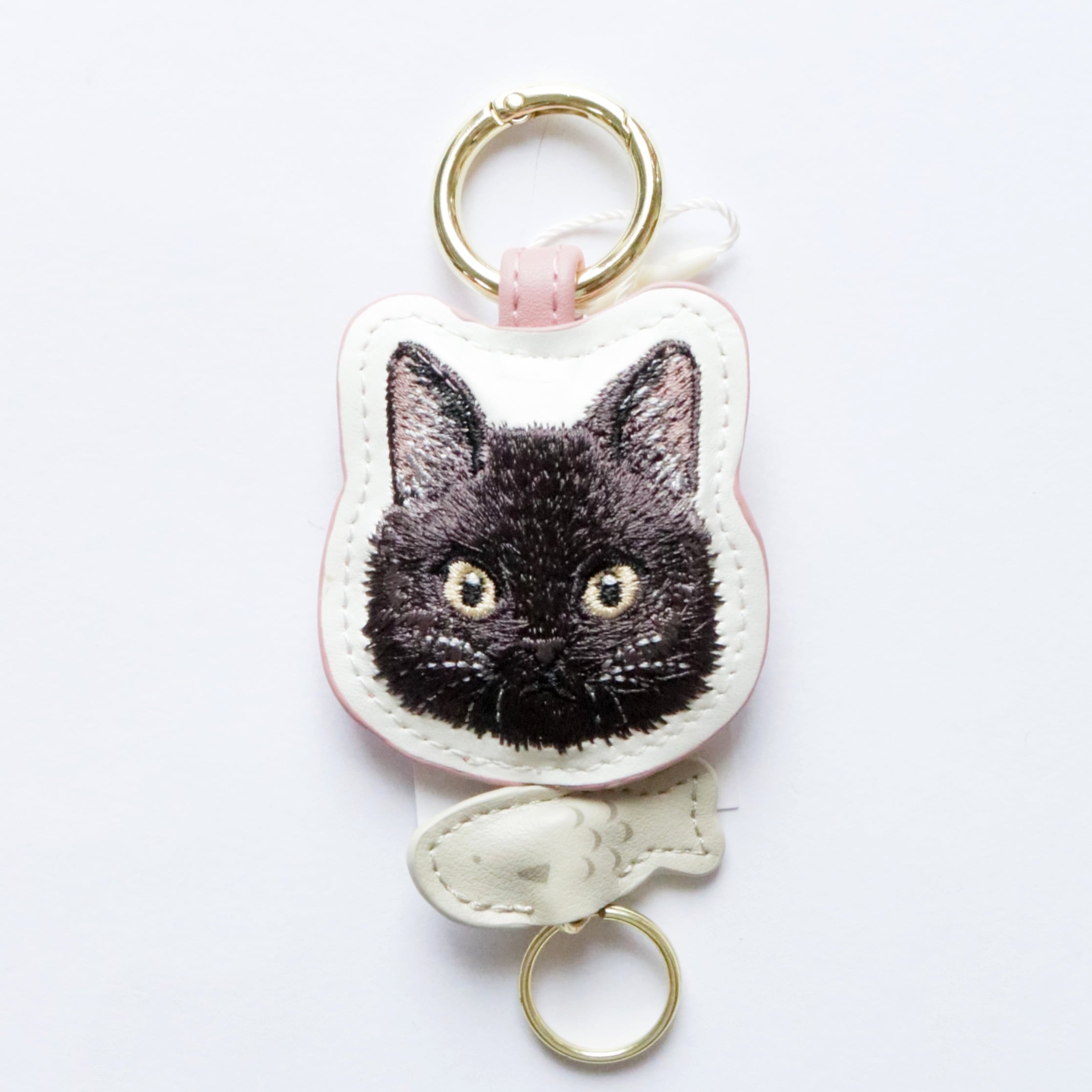 カラビナ付きキーリング/刺繍リールチャーム/黒