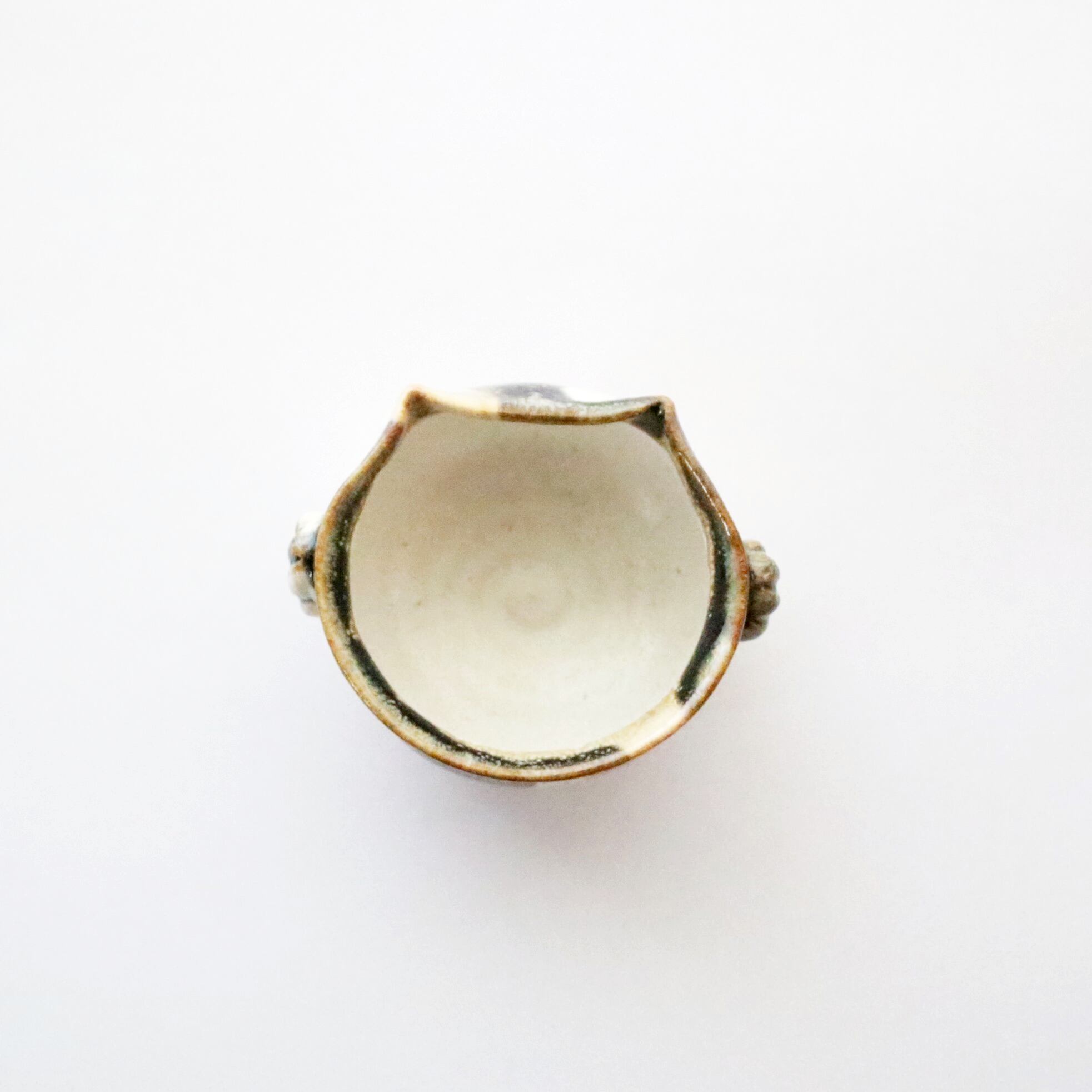 猫顔型のぐいのみ。可愛い猫の手付きです。薬味入れやアクセサリー入れにもおすすめです。