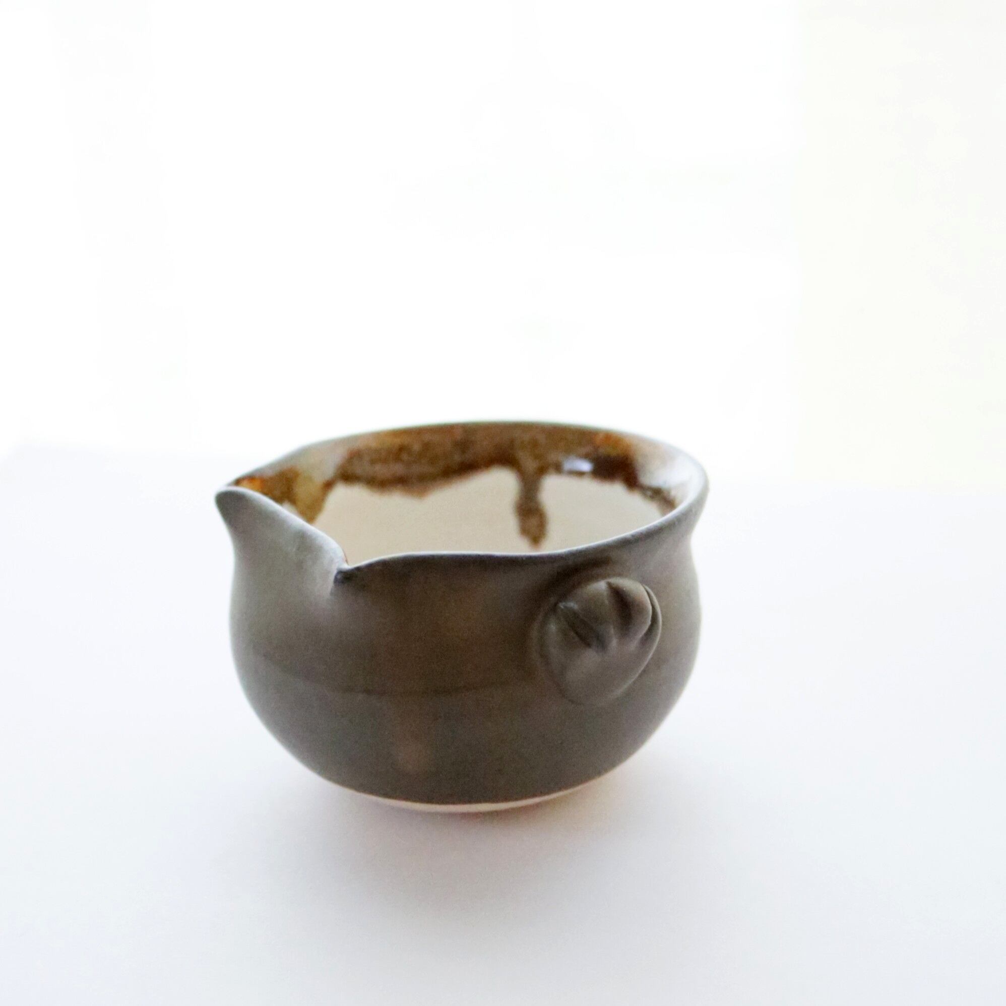 猫顔型のぐいのみ。可愛い猫の手付きです。薬味入れやアクセサリー入れにもおすすめです。
