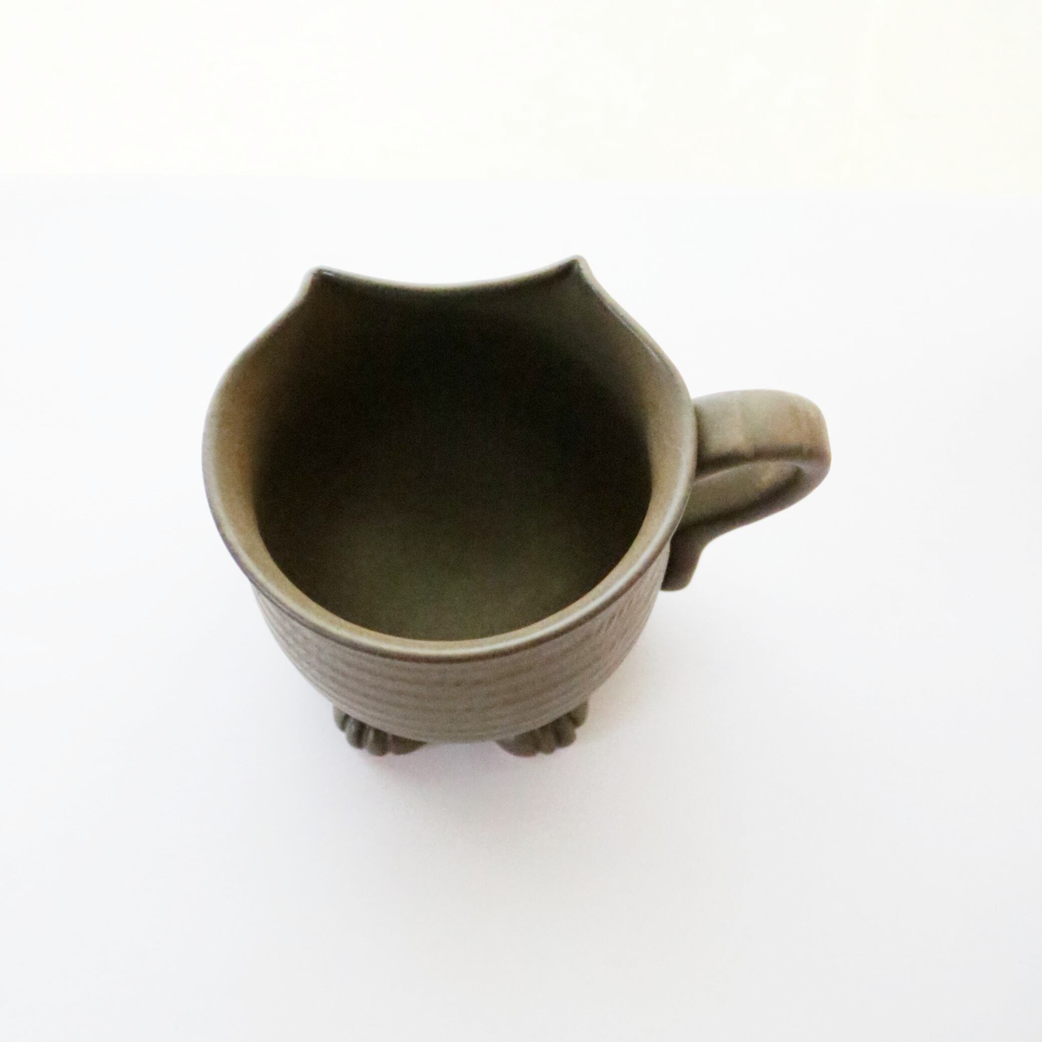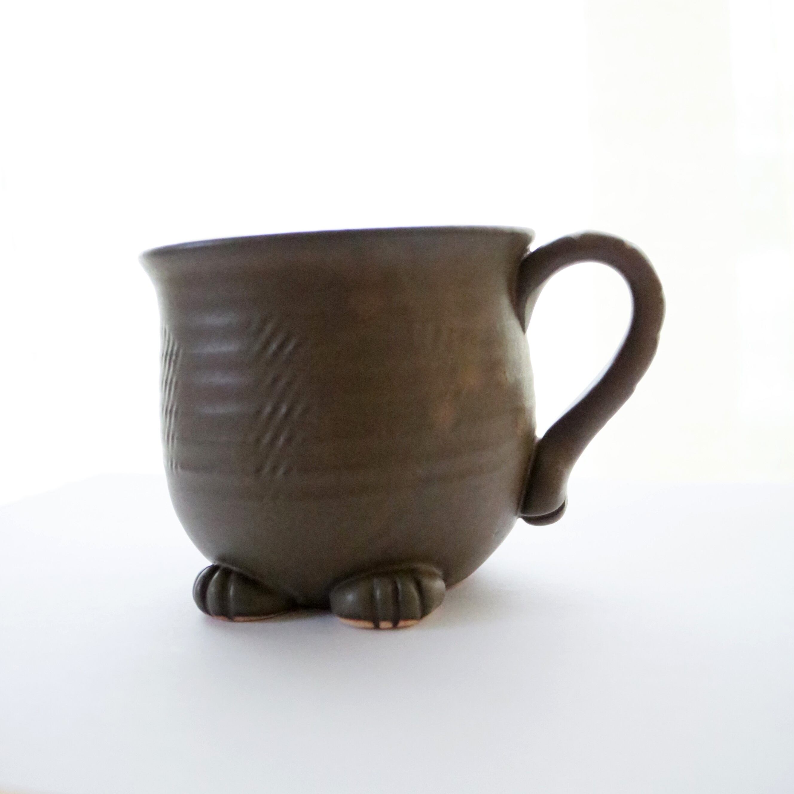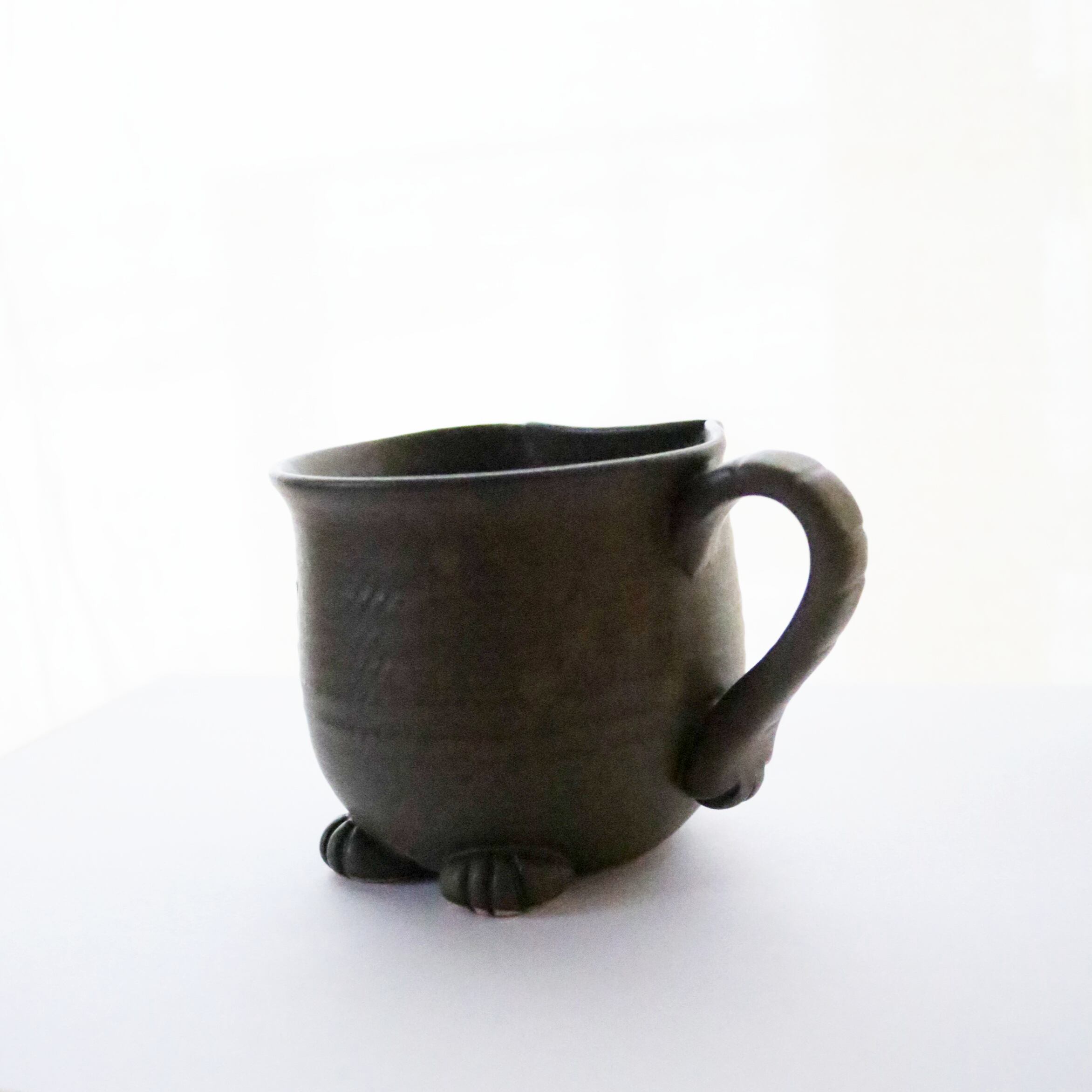 宮城に工房を構えるATELIER kijinさんのマグカップ。猫のシルエットがモチーフのオリジナル陶器です。尻尾や前脚もついていて、まるで猫が座っているようです♪