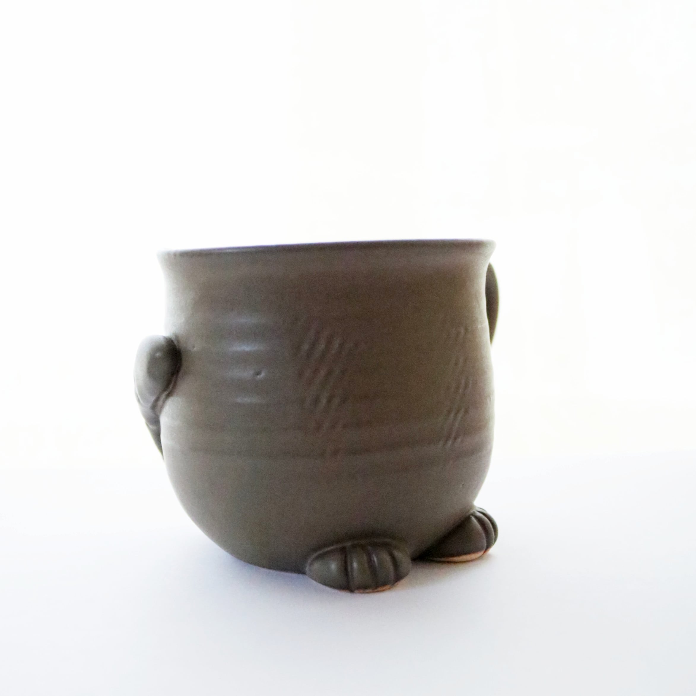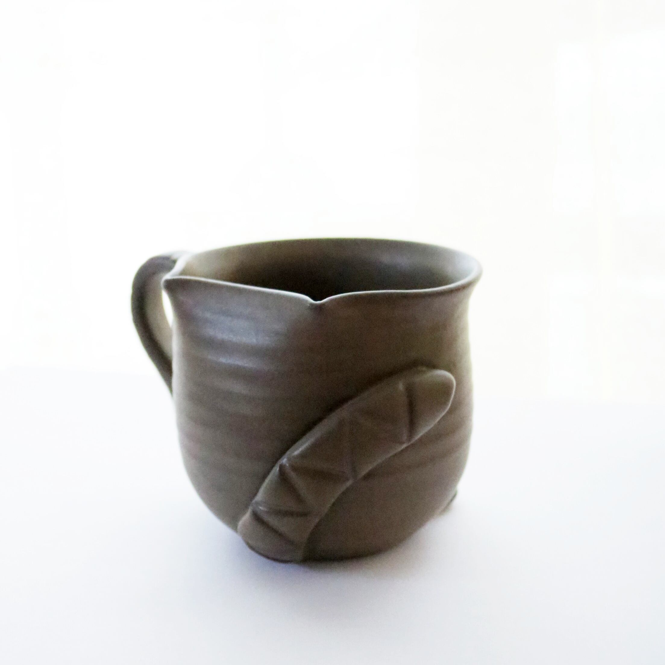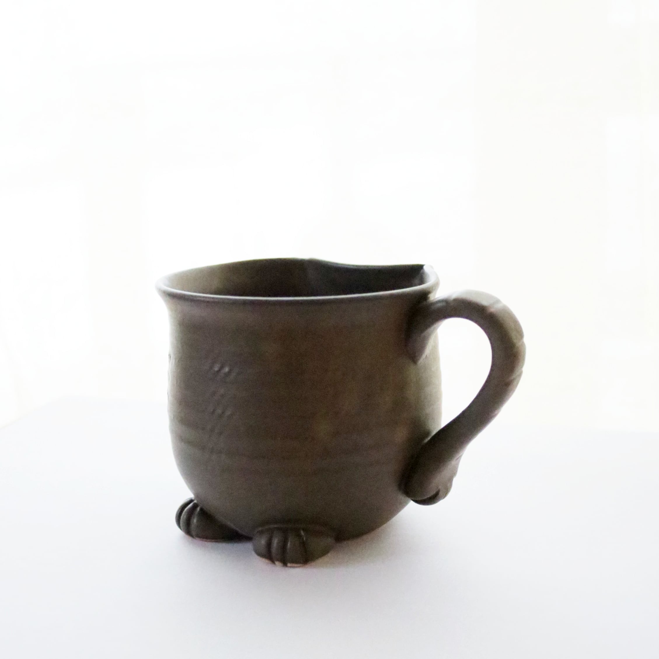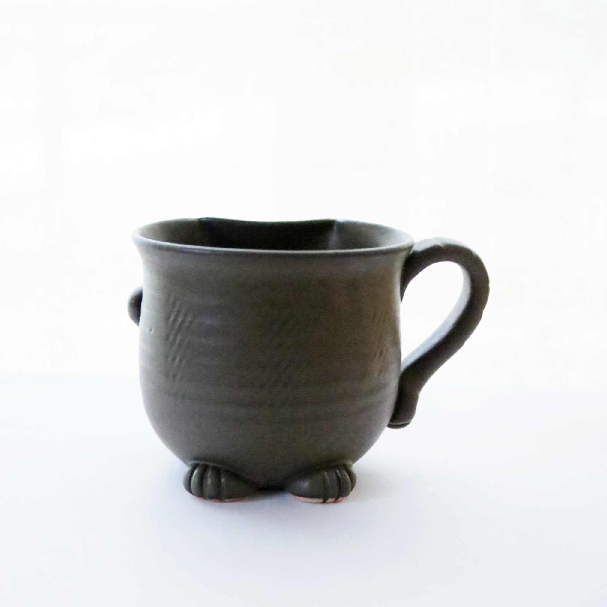 宮城に工房を構えるATELIER kijinさんのマグカップ。猫のシルエットがモチーフのオリジナル陶器です。尻尾や前脚もついていて、まるで猫が座っているようです♪