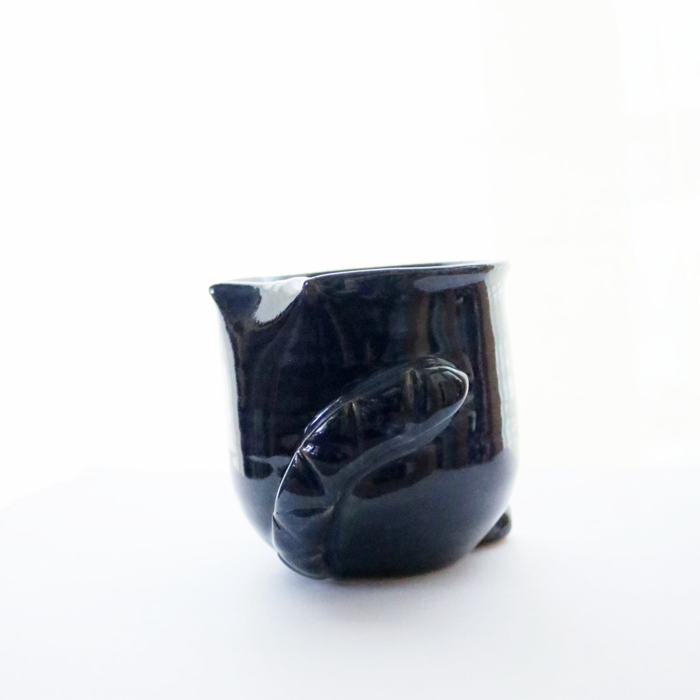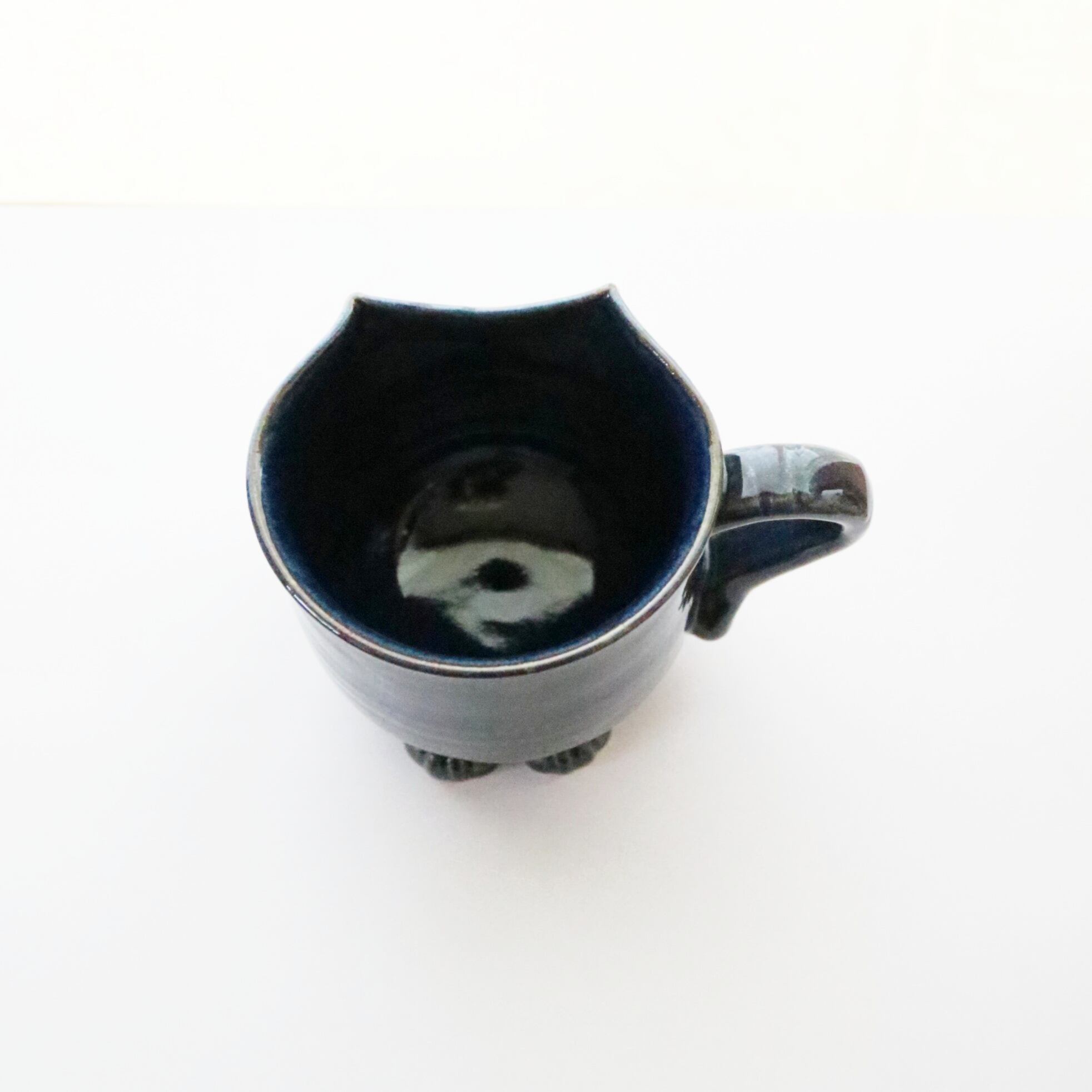 宮城に工房を構えるATELIER kijinさんのマグカップ。猫のシルエットがモチーフのオリジナル陶器です。尻尾や前脚もついていて、まるで猫が座っているようです♪