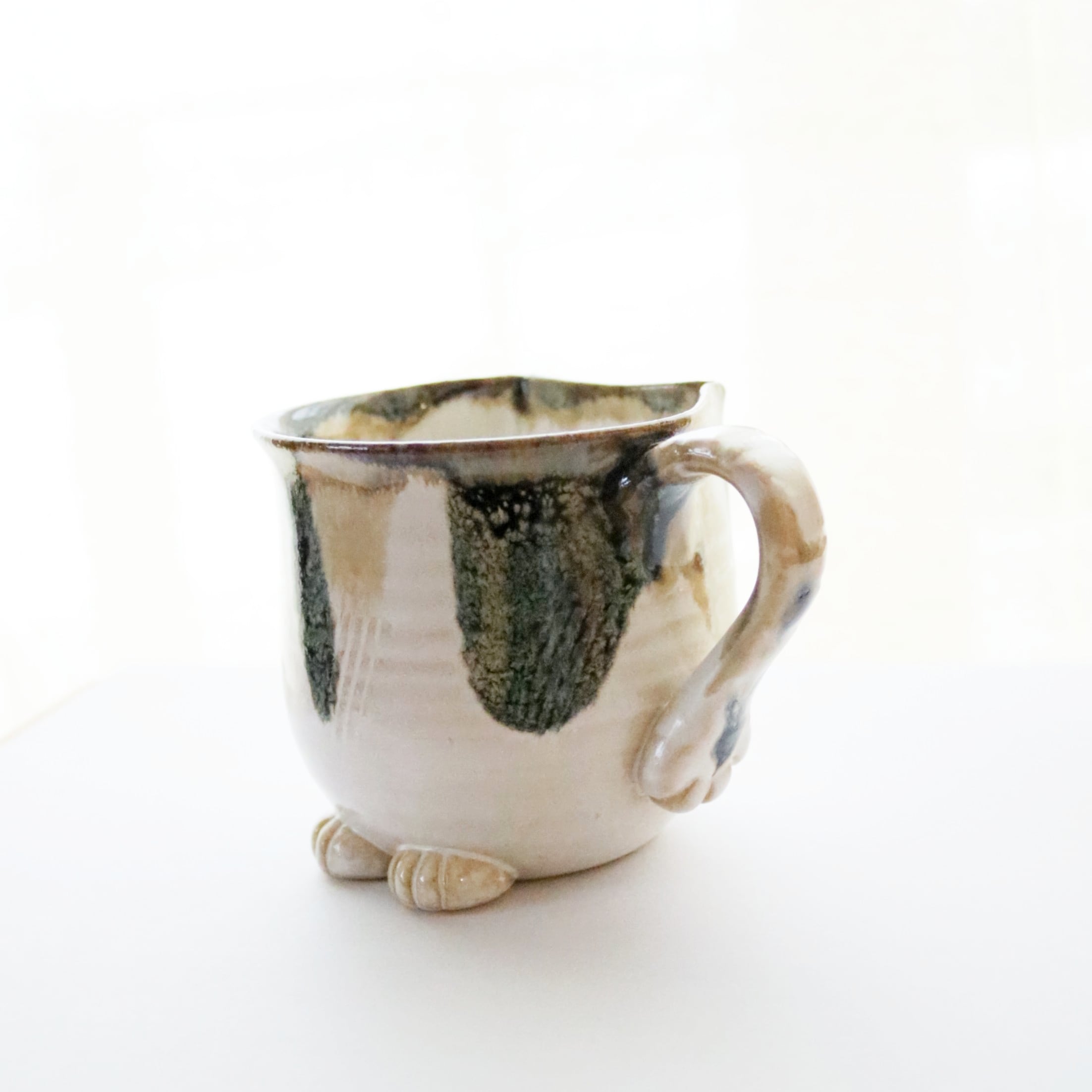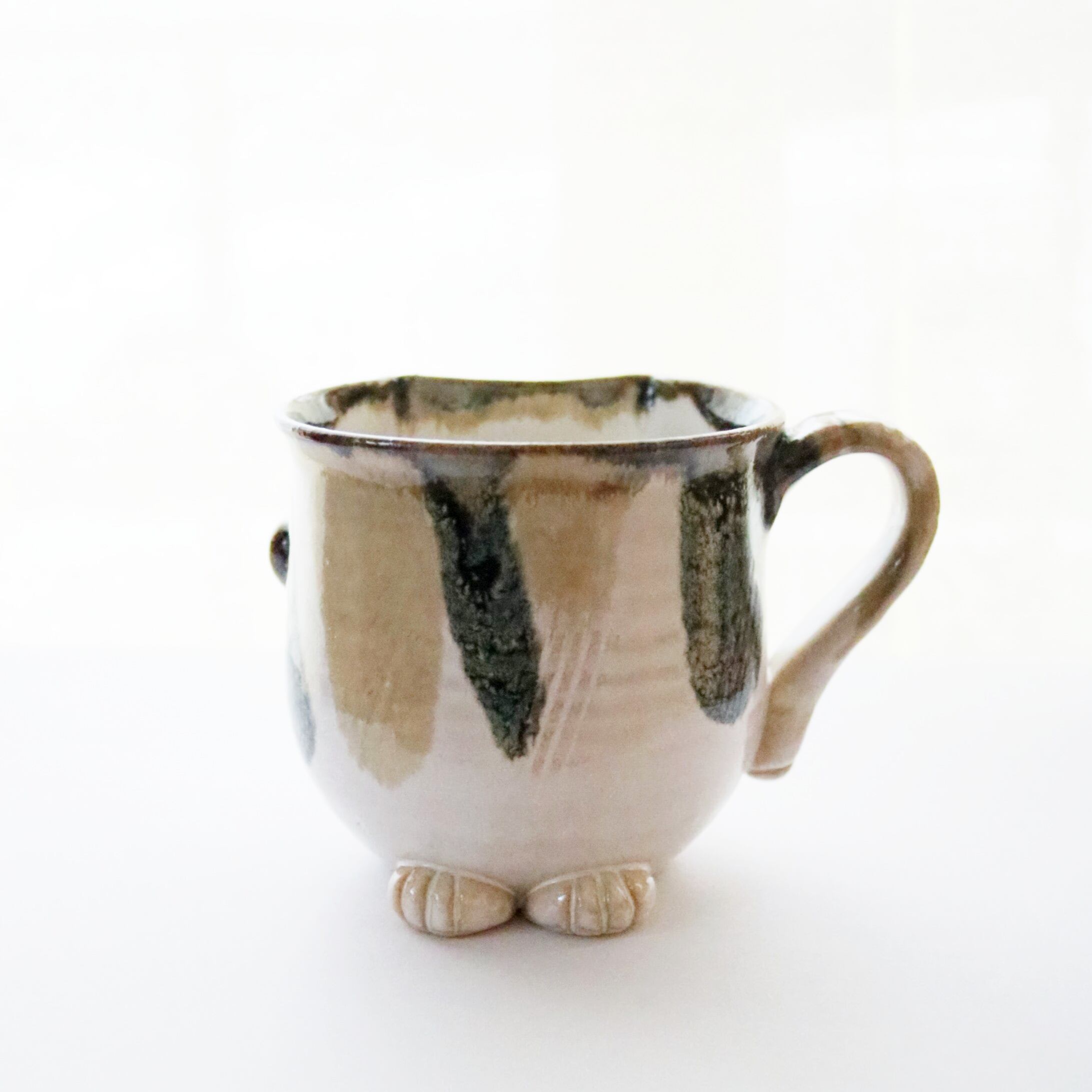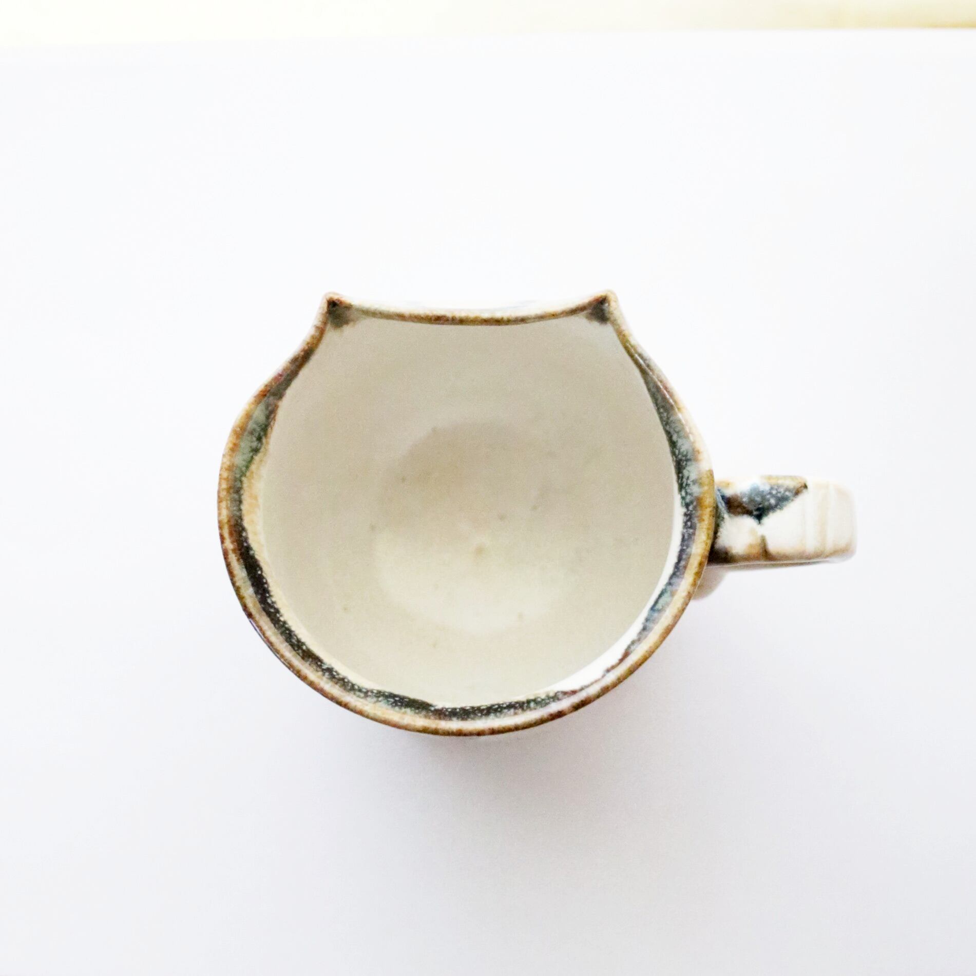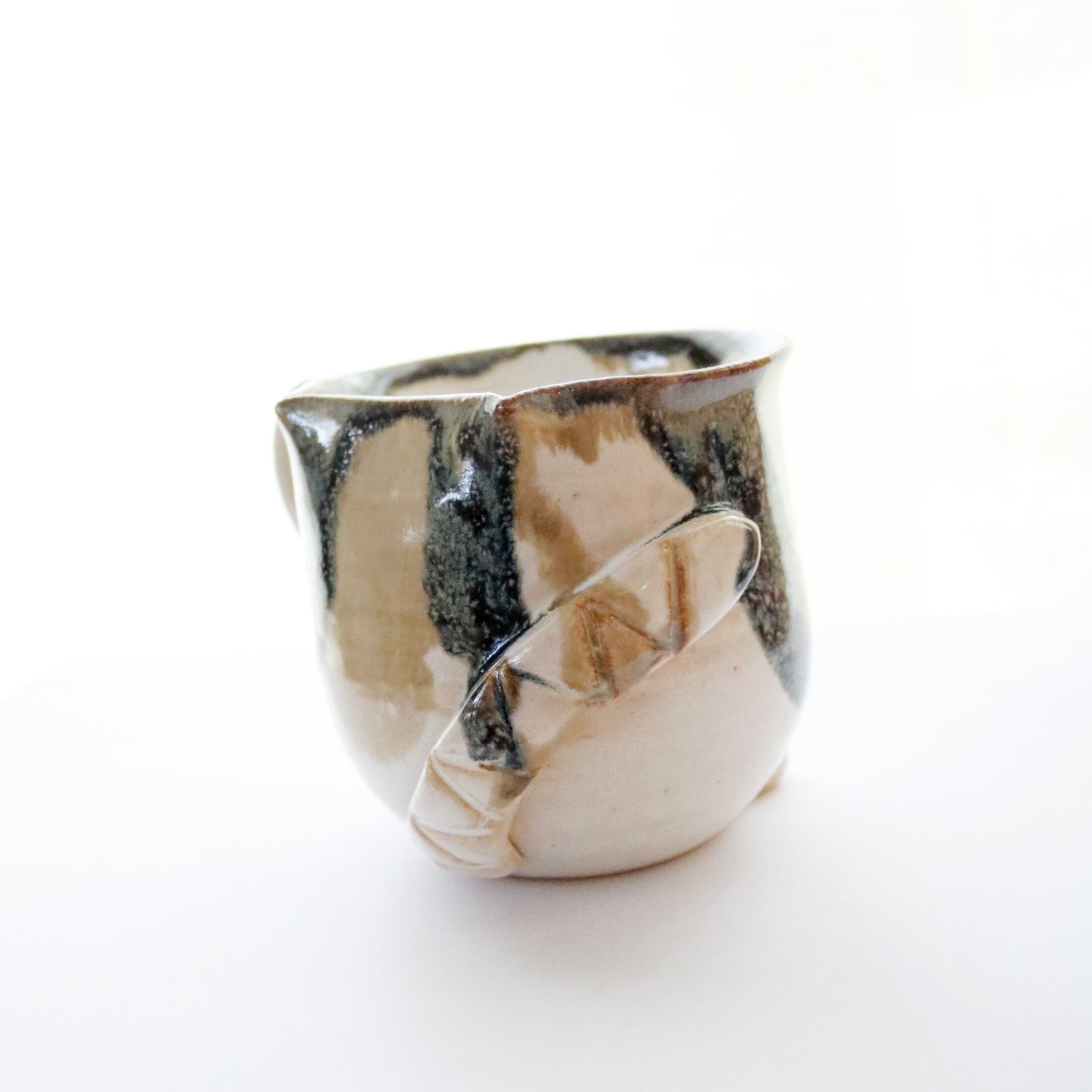 宮城に工房を構えるATELIER kijinさんのマグカップ。猫のシルエットがモチーフのオリジナル陶器です。尻尾や前脚もついていて、まるで猫が座っているようです♪