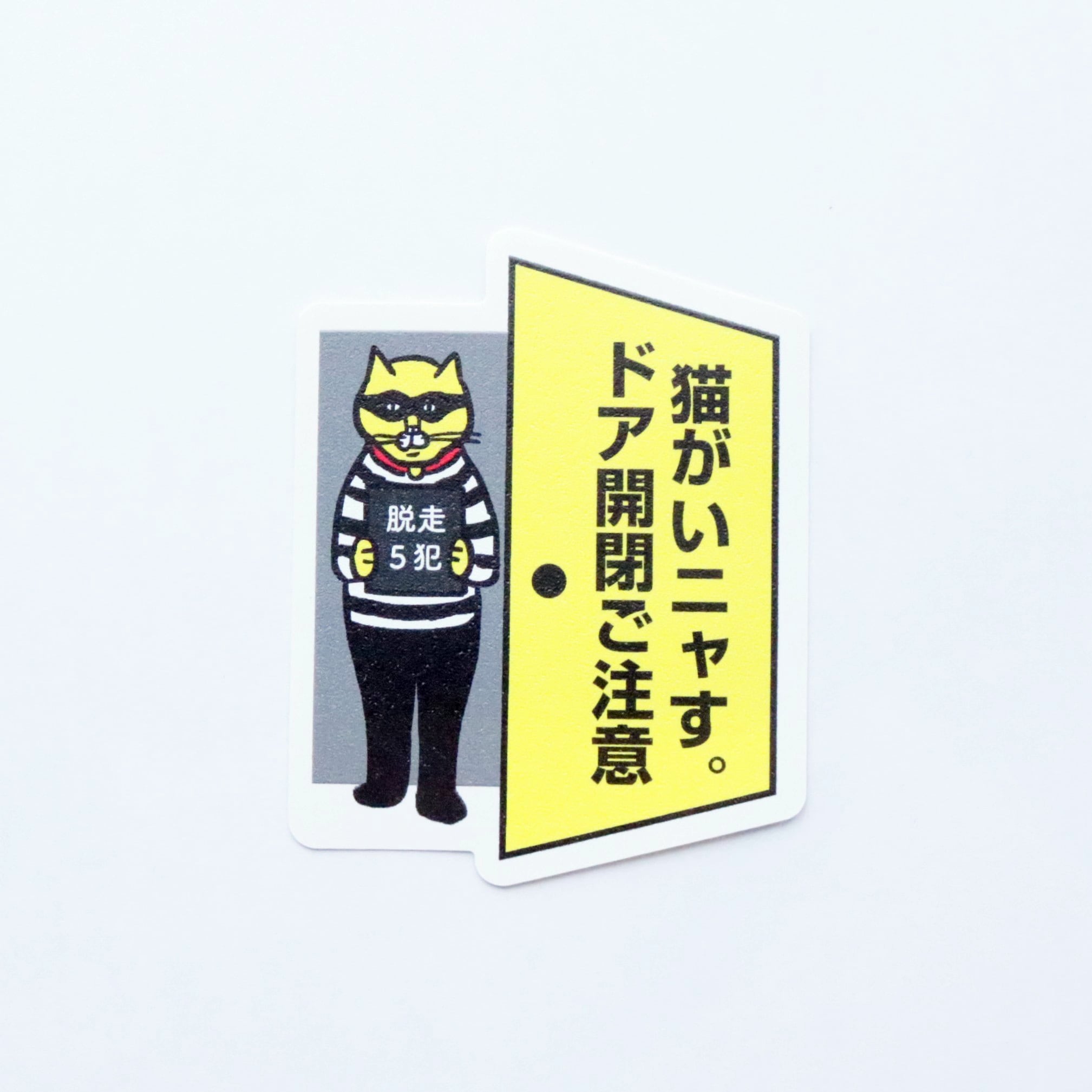 前科5犯!にならないように…猫の脱走を防止するステッカーです。