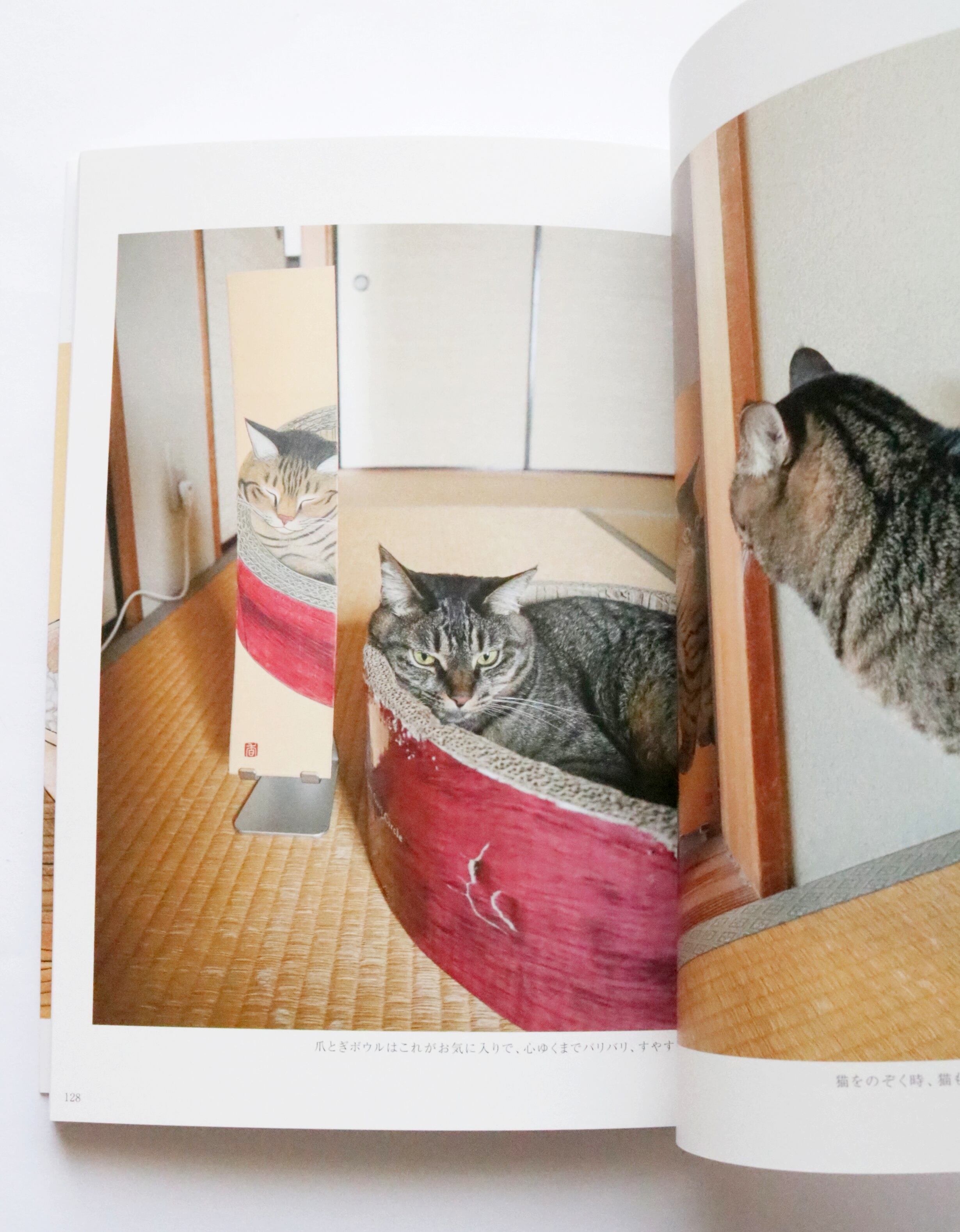 食卓の焼き魚を狙ったり、飼い主のカーディガンの上に陣取ったり、抱っこの腕から逃れようと暴れ、花瓶を倒して知らんぷり……。猫のいる日常の何気ない、けれどたまらなく愛おしい瞬間を描きます。