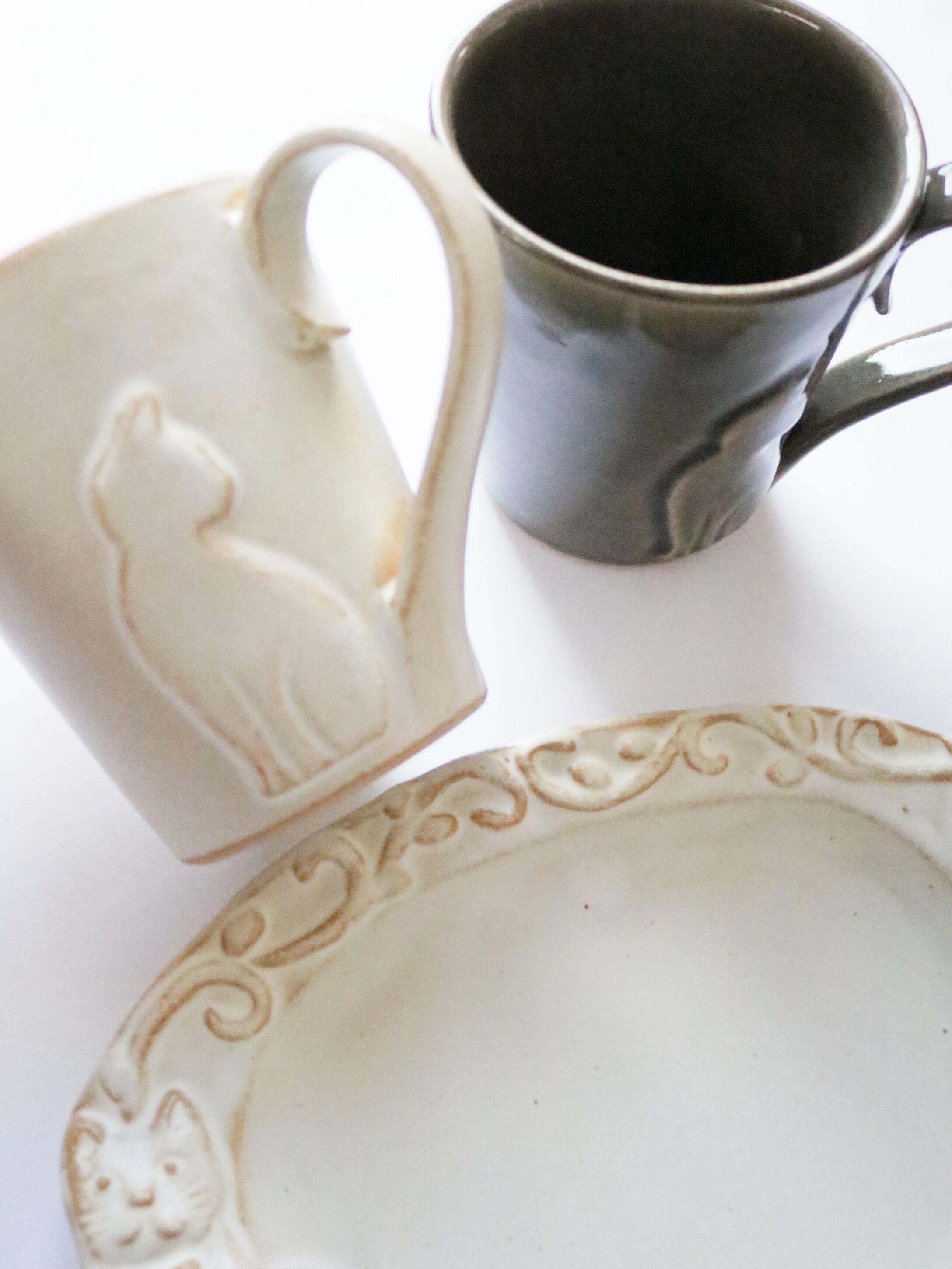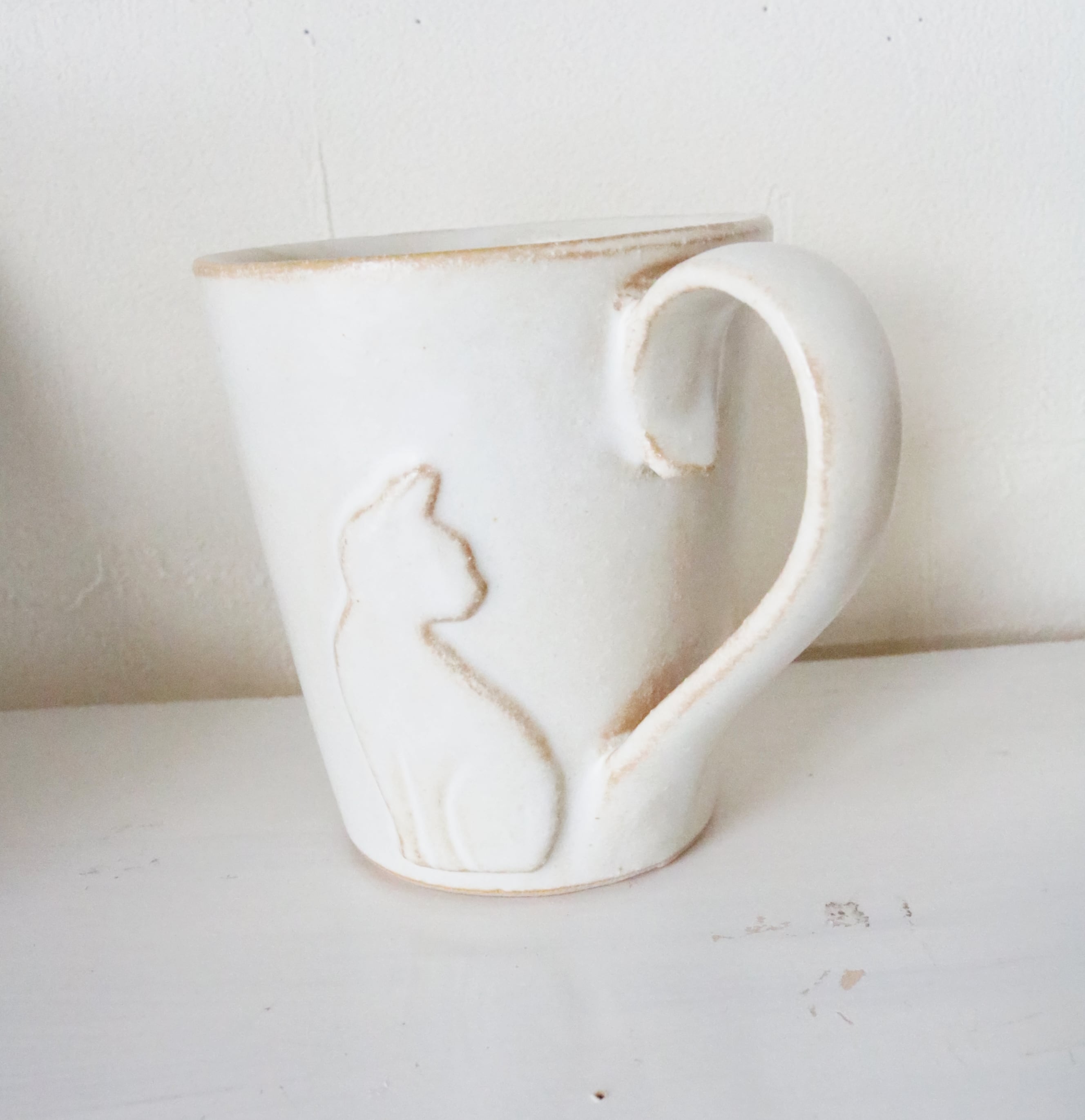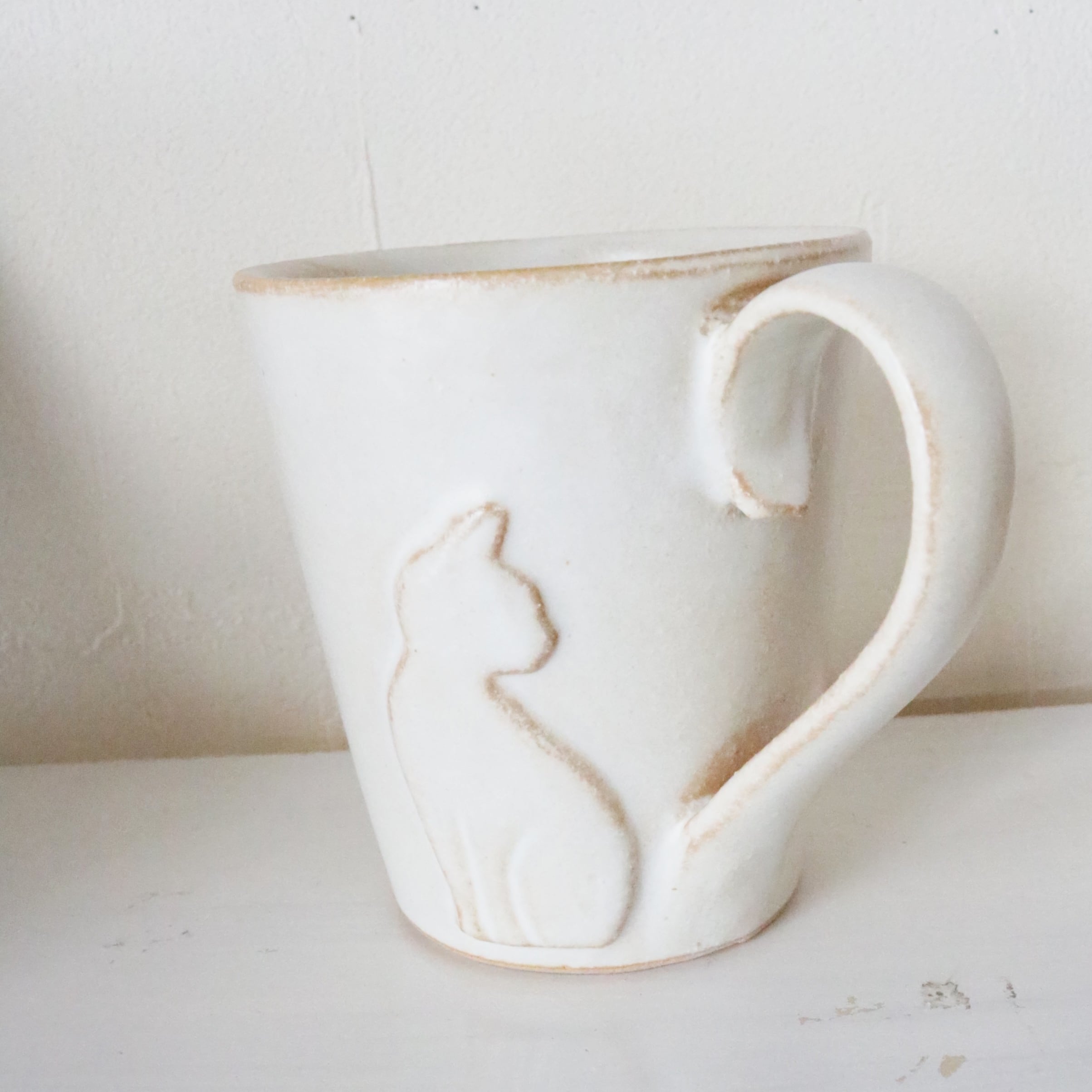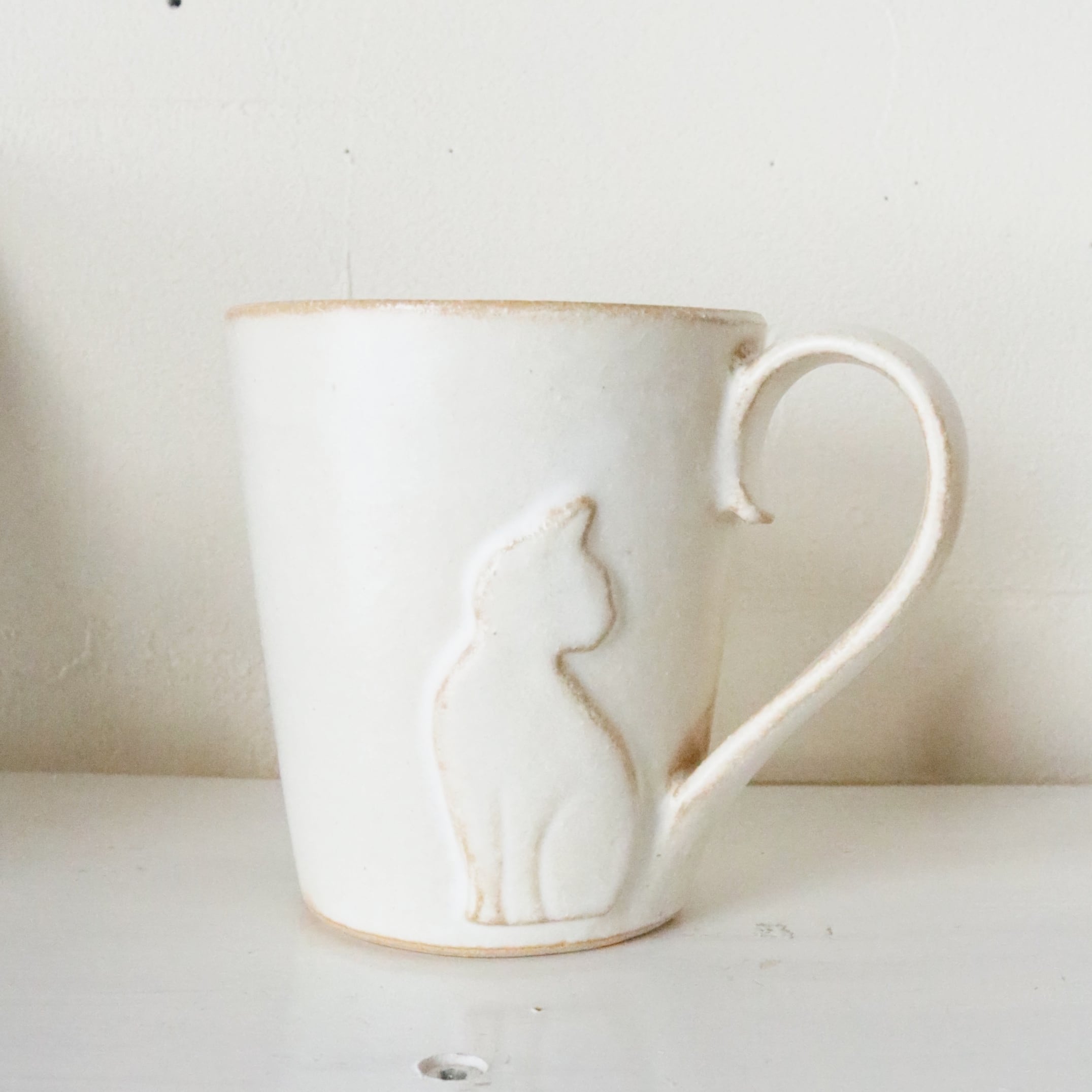 マグカップ/ねこのしっぽマグ/益子焼/白