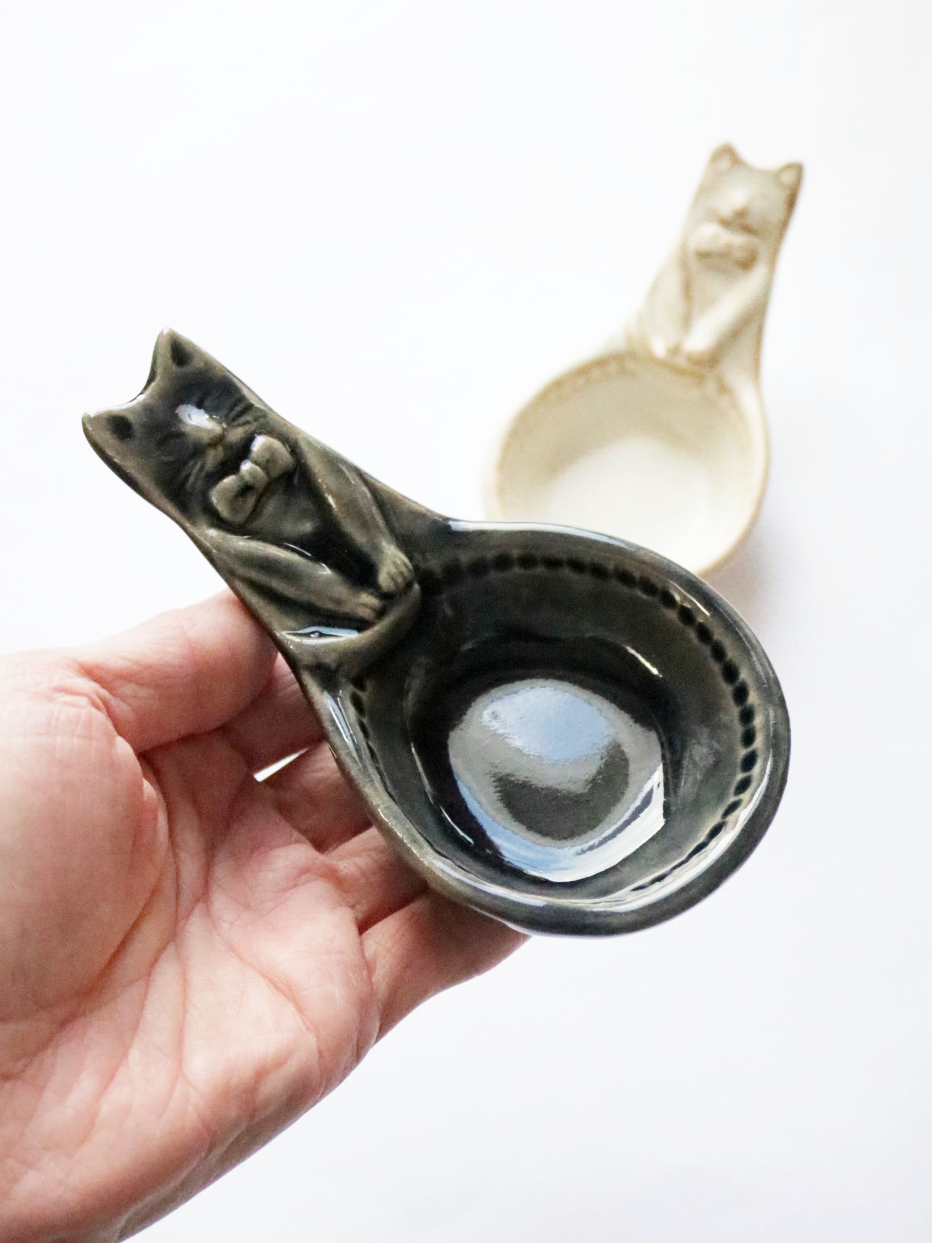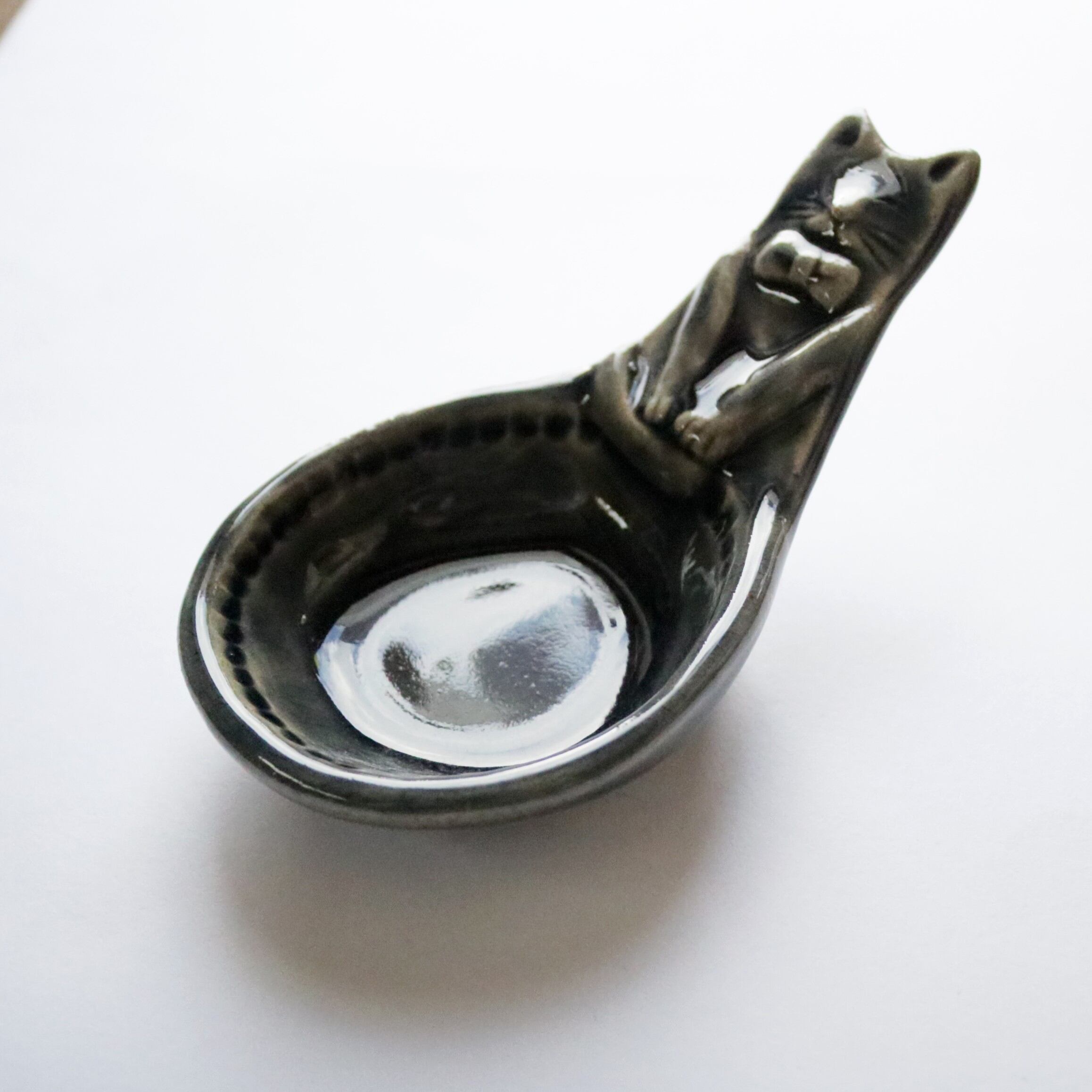 小皿/スプーン小皿/益子焼/イーハトーブの猫