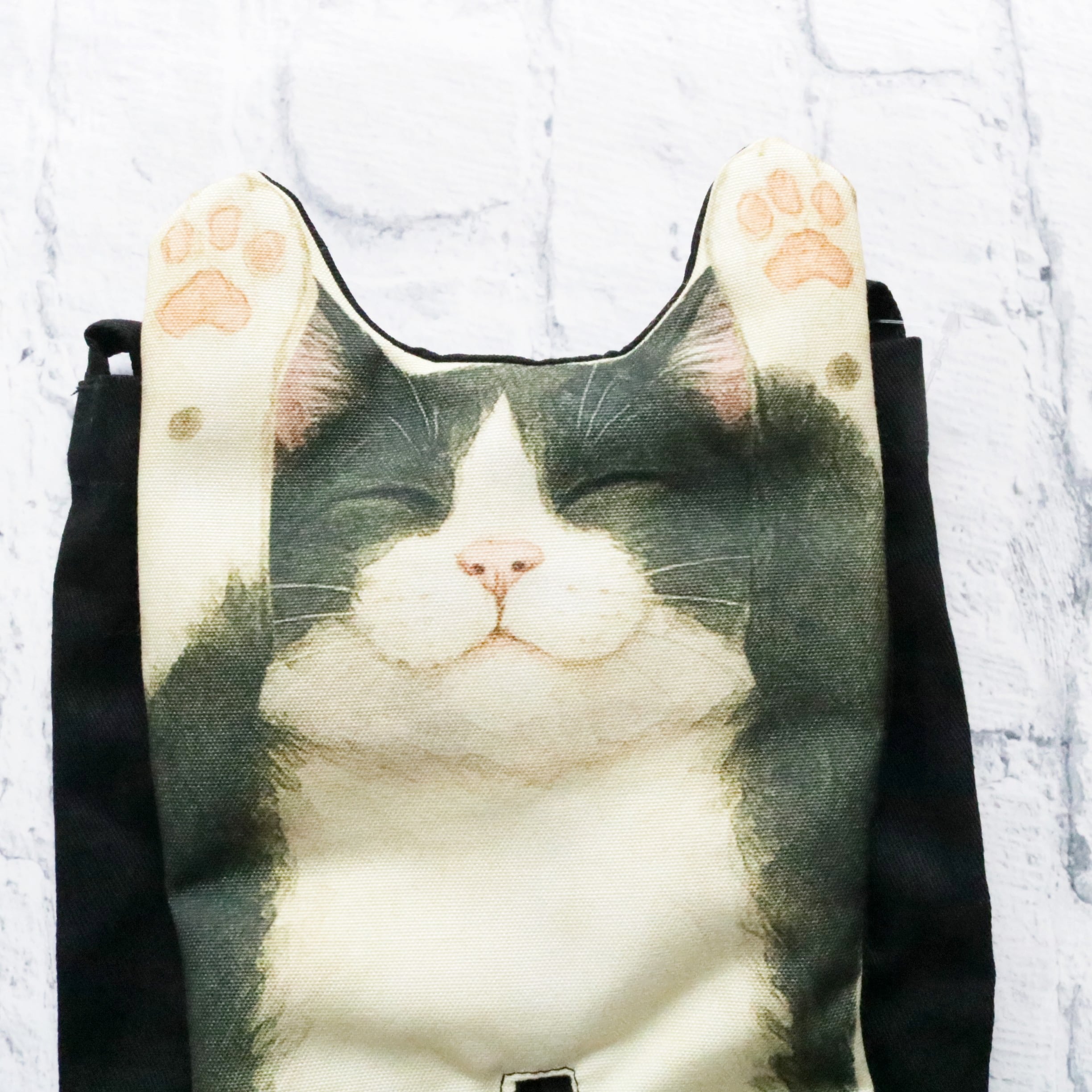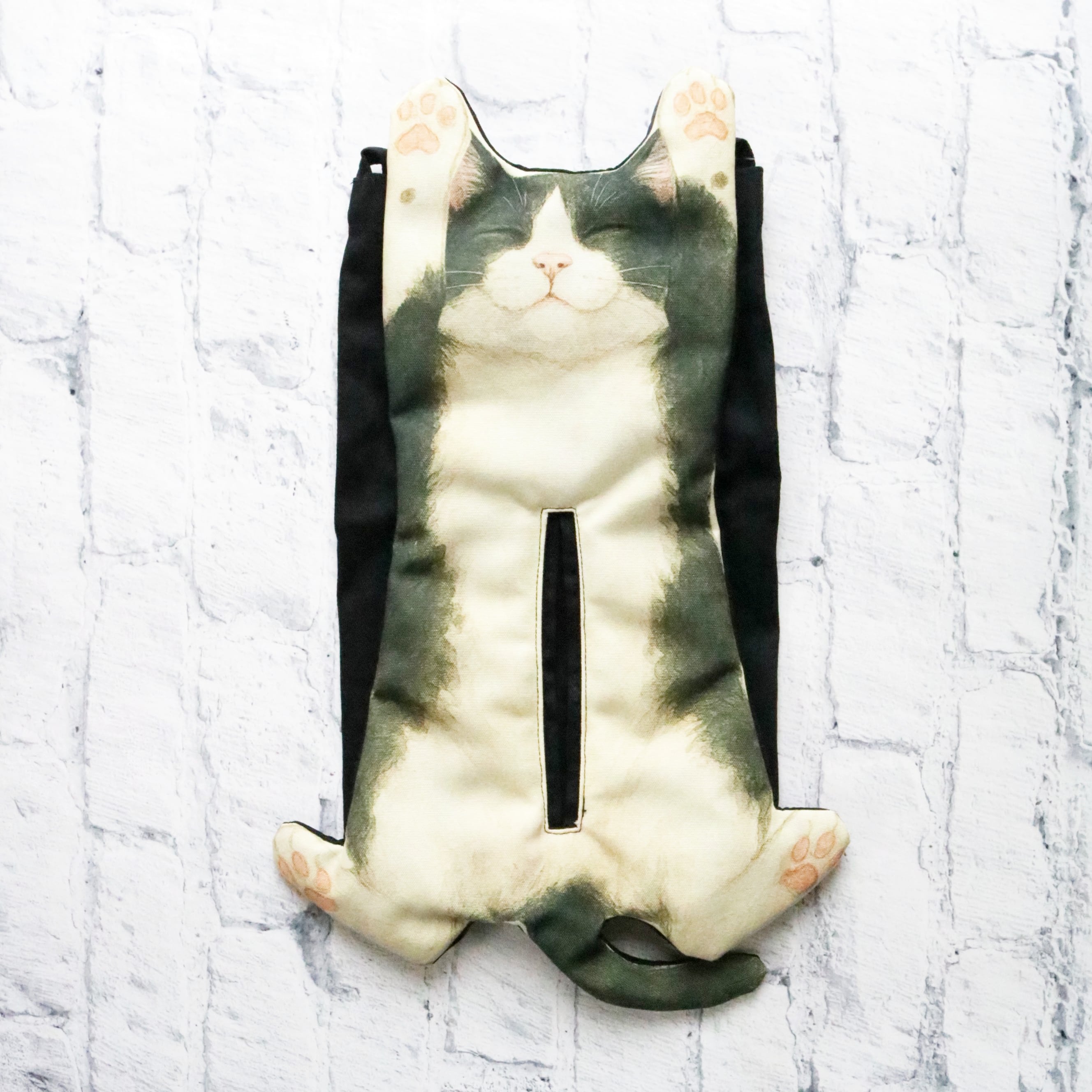 へそ天猫のお腹からティッシュが取り出せるティッシュボックスカバー。ハンドル付きなので吊り下げて使用することもできます。