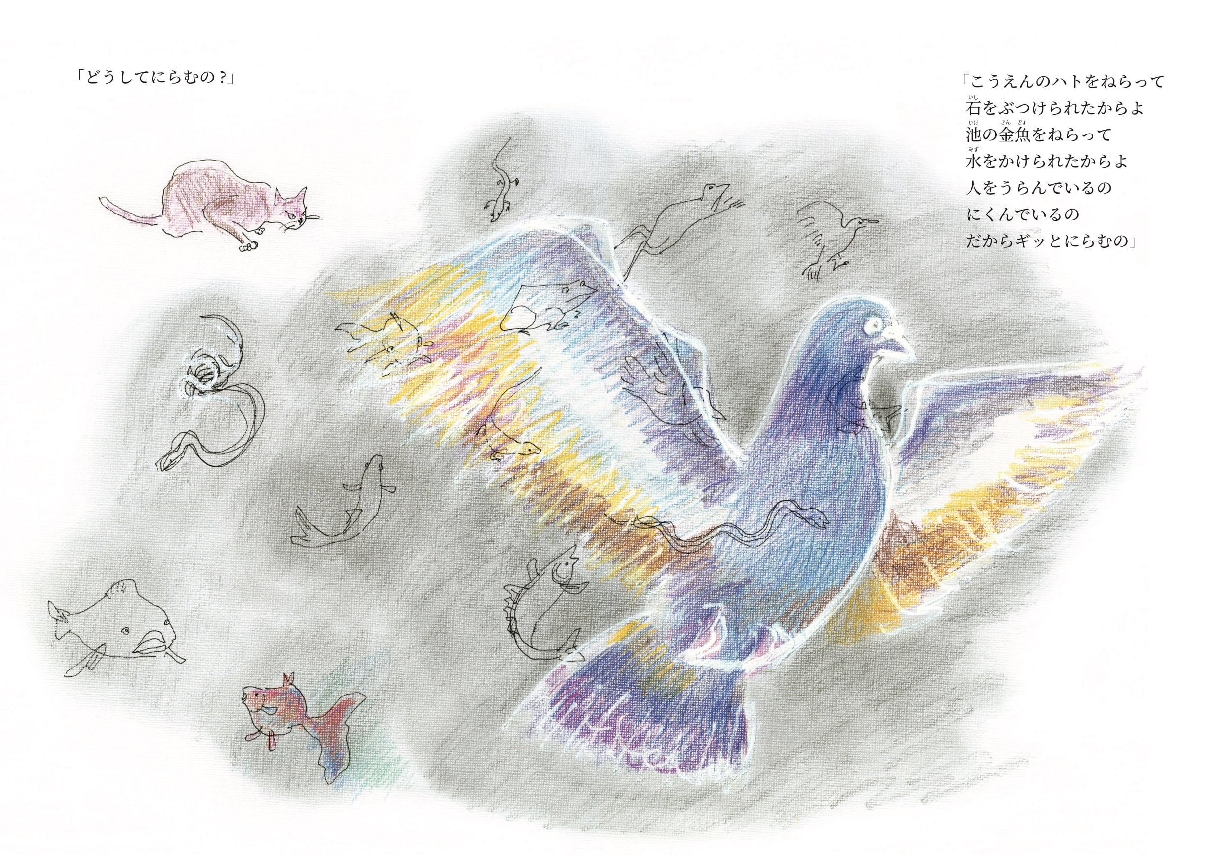 一匹の汚れた猫を助けようとする男の子。「汚いし、乱暴だから」と引き離す母親。しかし、その猫の悪い噂は、あくまでも噂であって、誰も真実を知らない。猫を比喩として、短い言葉で語るメッセージは、子どもにも大人にも心にのこる詩になるだろう。
