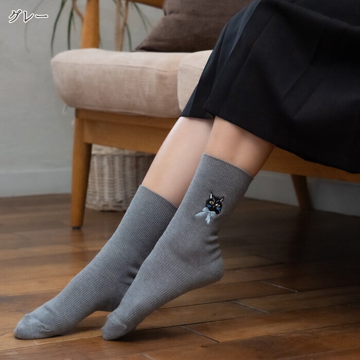 靴下/刺繍猫