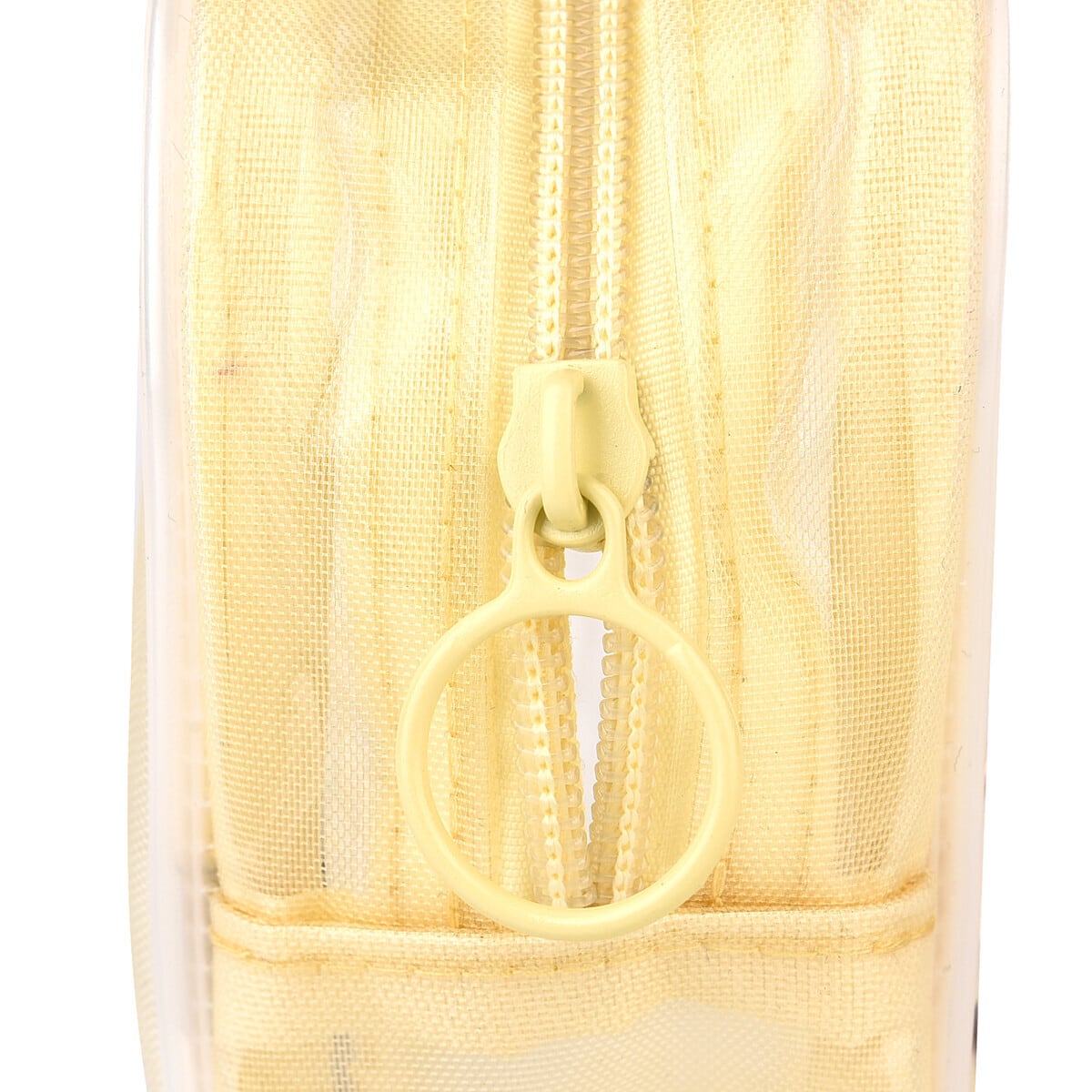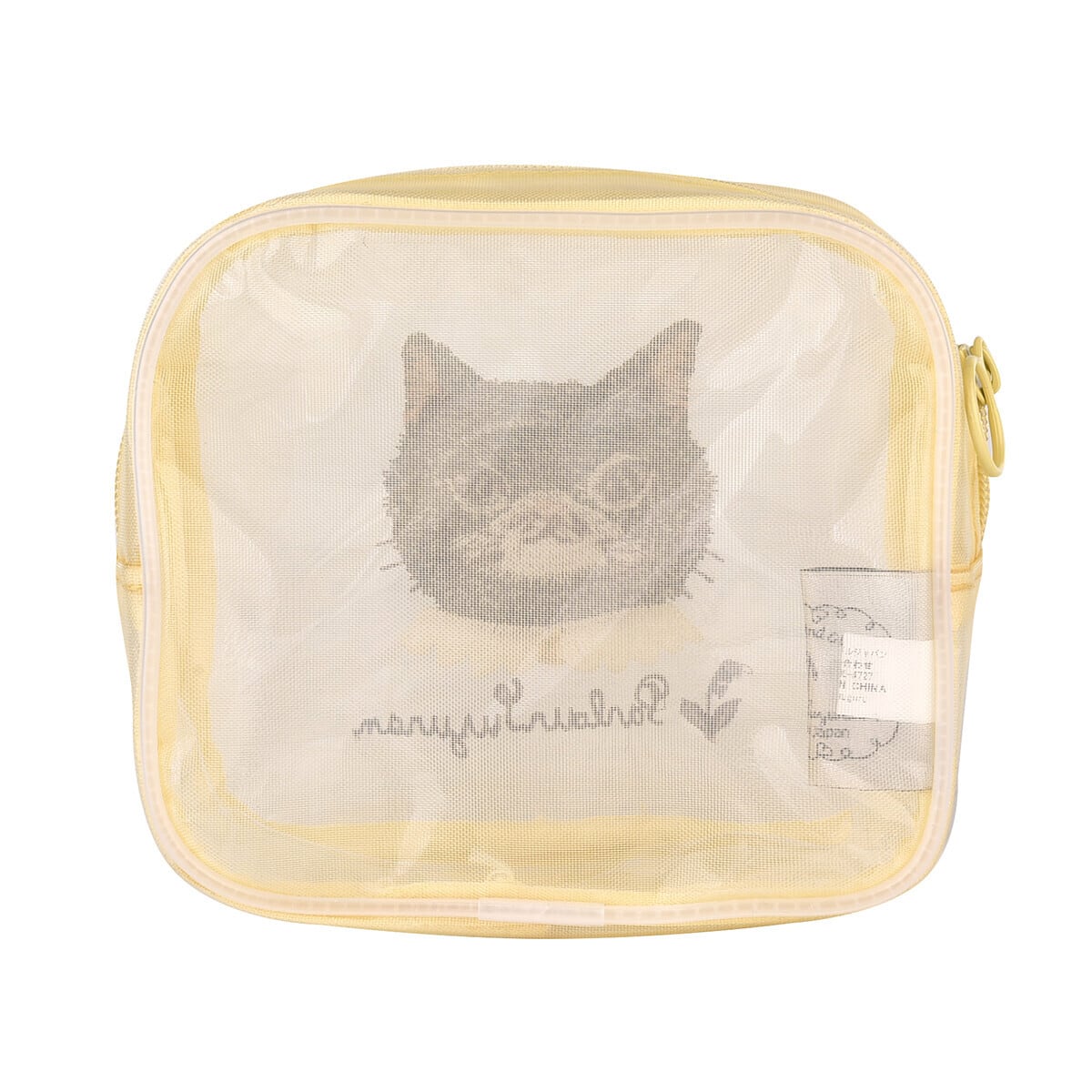 ハリのあるメッシュ素材で中身が透けて見えるので、中に何を入れようか考えるのも楽しくなるアイテム。表側はメッシュの素材。内側が透明ビニールの裏地付きなので、コスメ等のパウダーが外にこぼれることはありません。汚れたときはウェットシートでサッと拭けます。