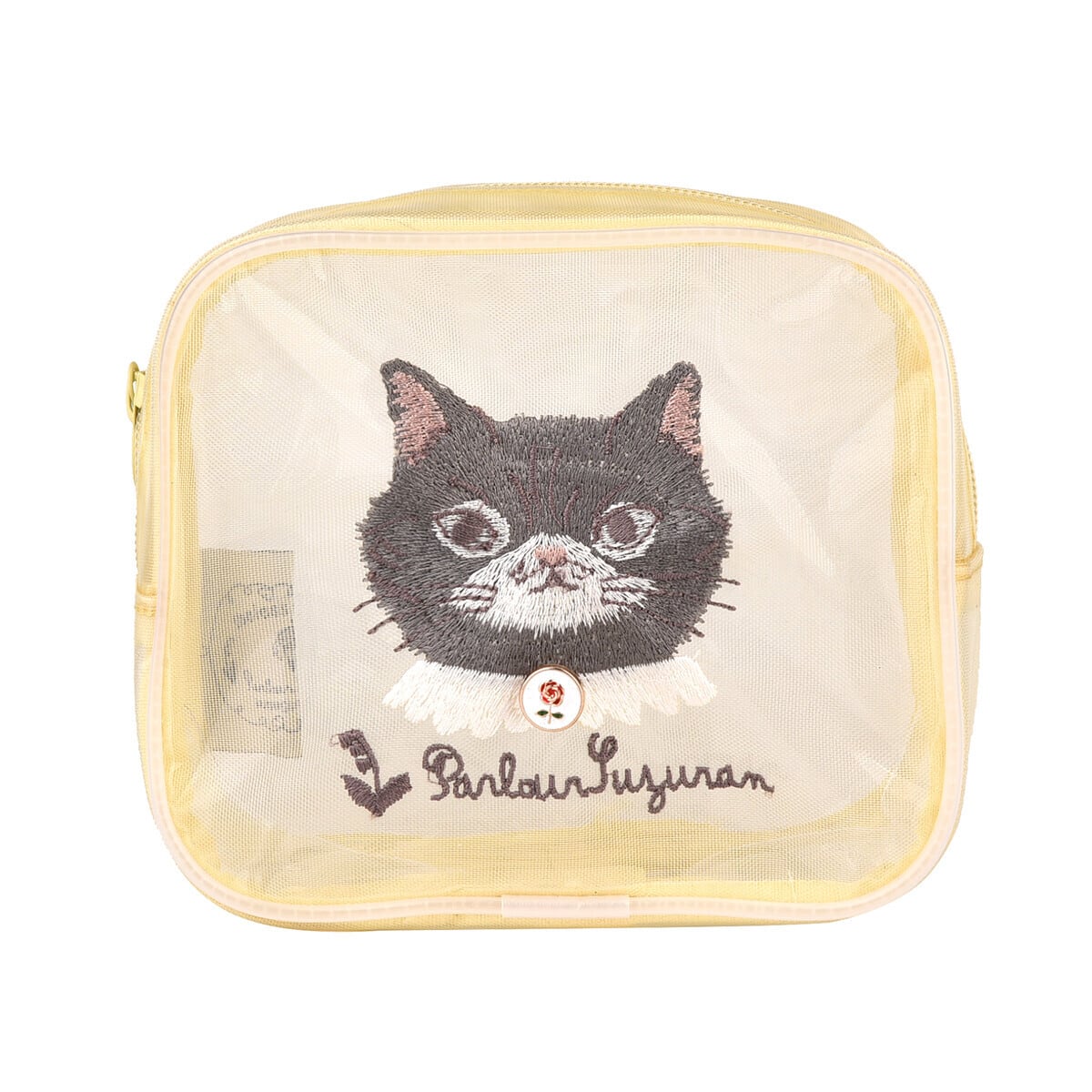 カラフルで砂糖菓子みたいな大人可愛いポーチ。キュートなおめかし猫の贅沢な刺繍が施されています。エアリーな素材にボリュームのある刺繍がアクセント。お部屋のインテリアとして壁にかけてもかわいらしい。