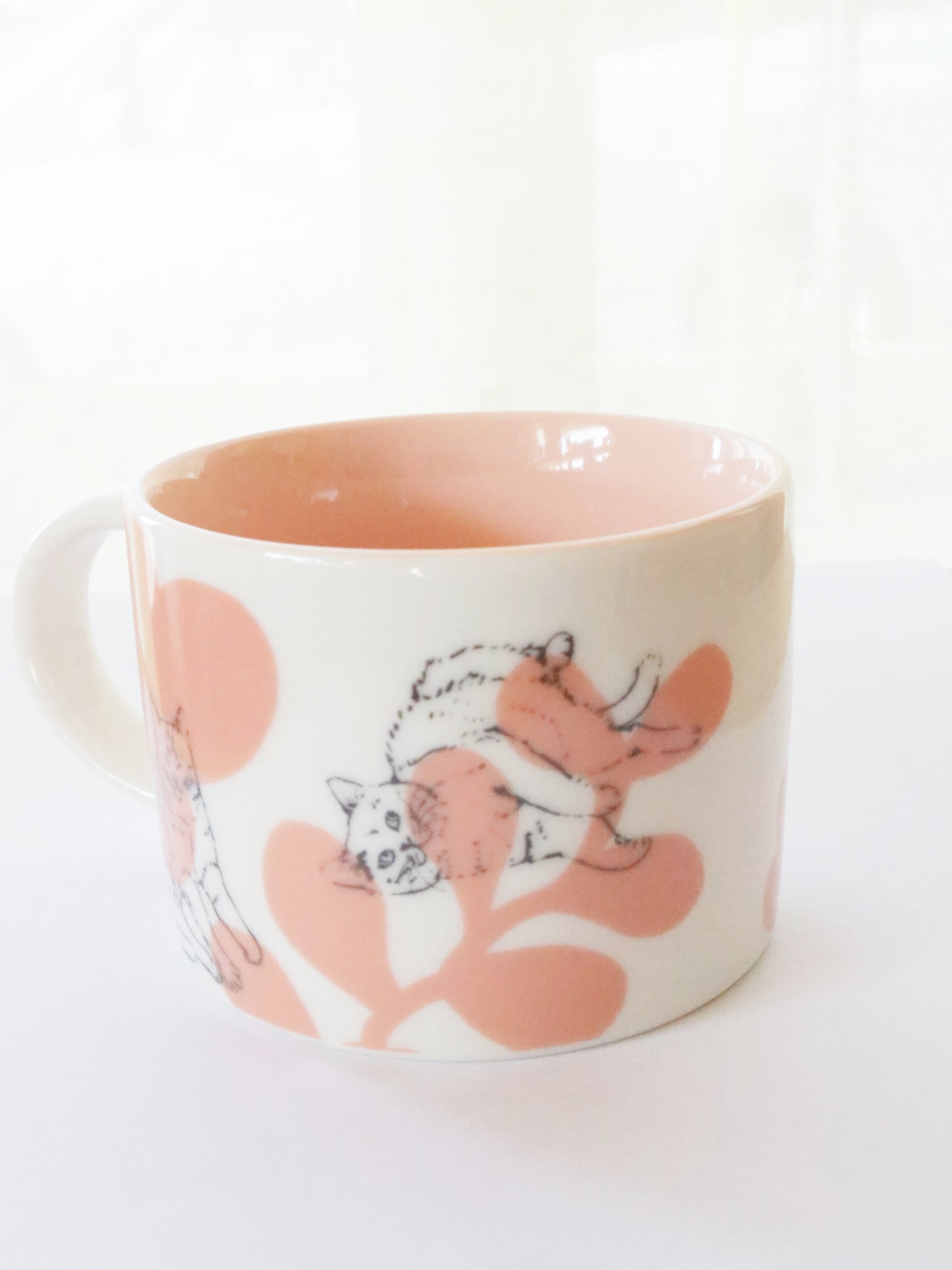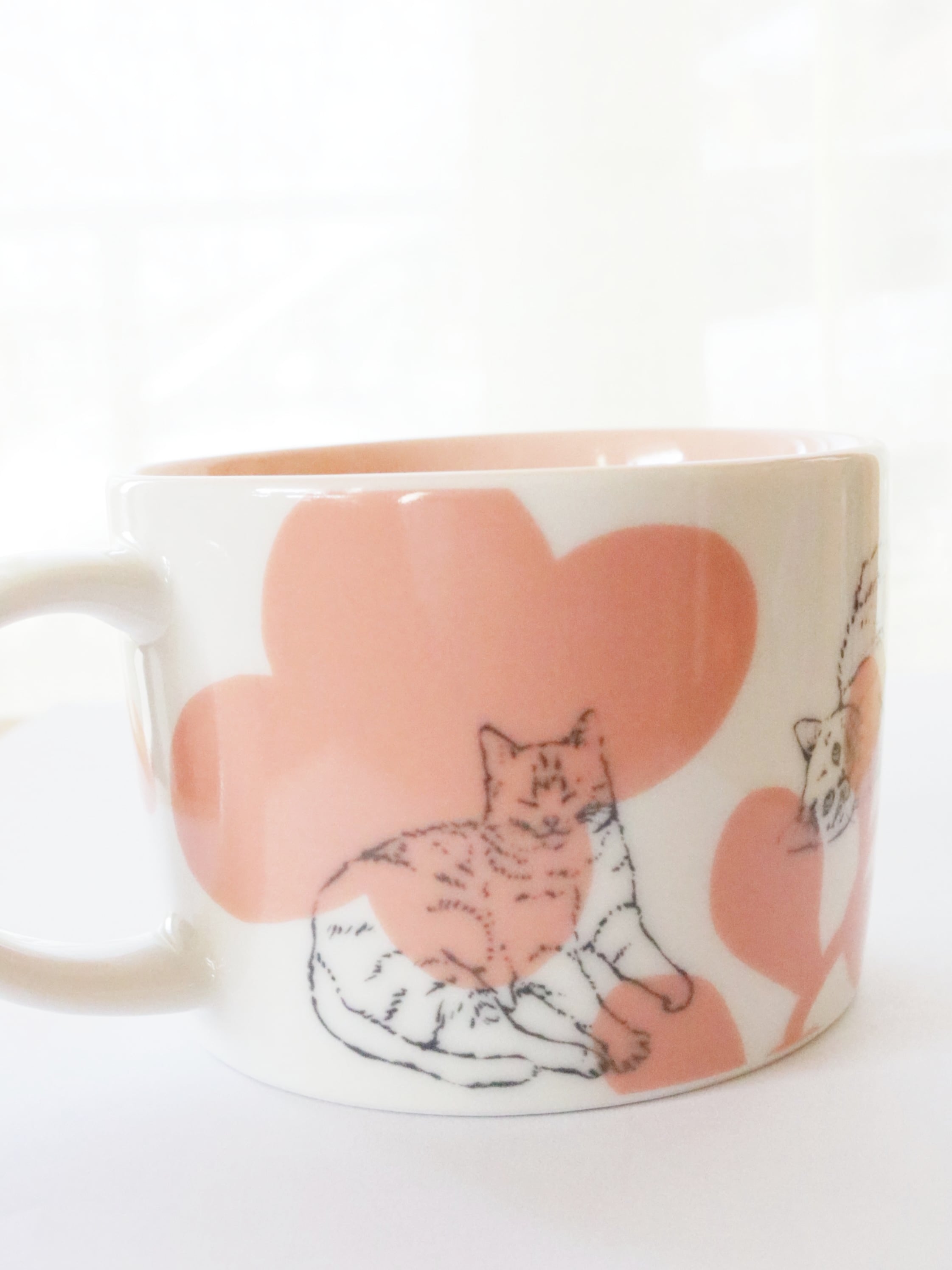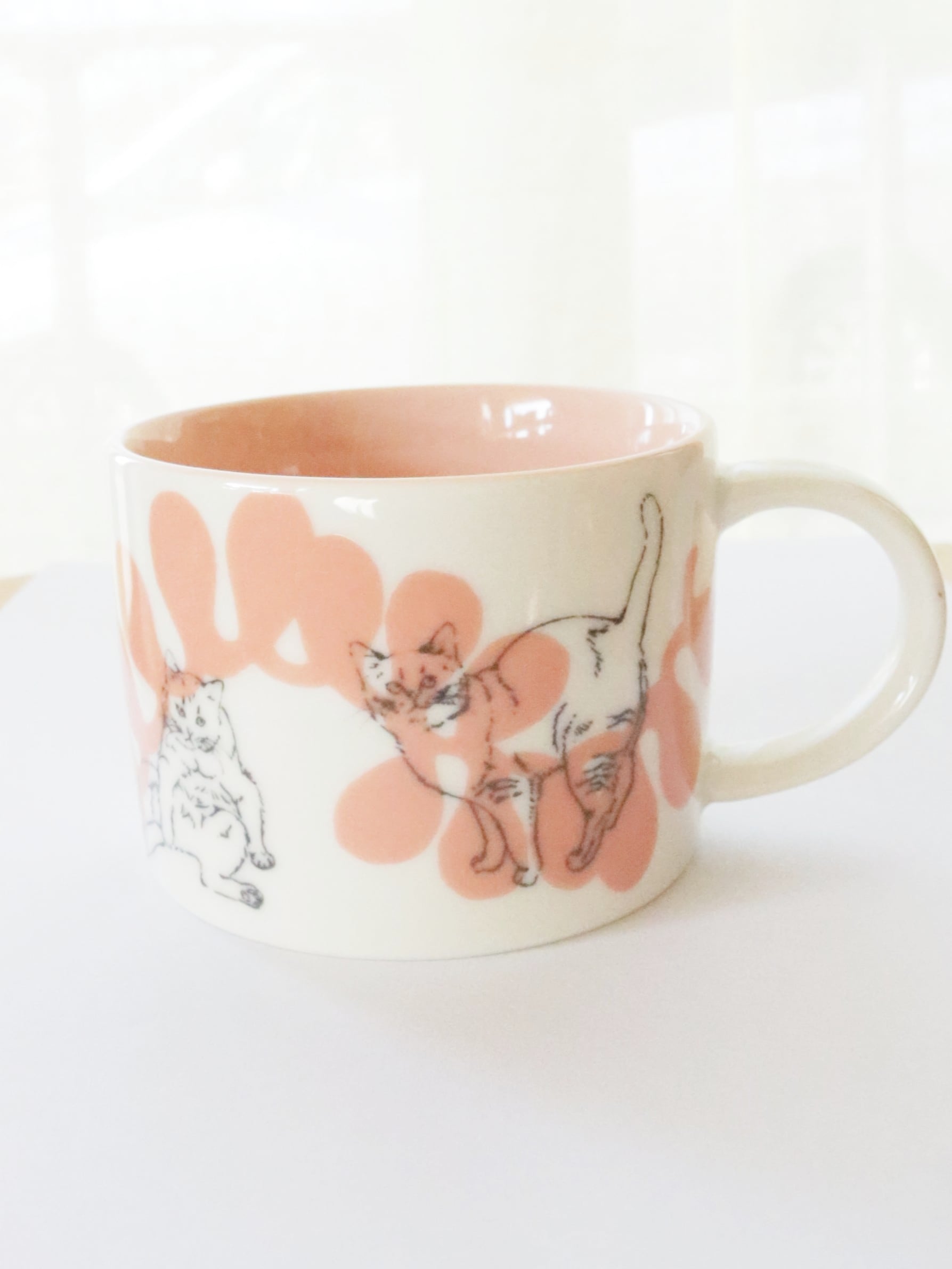 作家として活動している内村七生さんの美濃焼のカップ。猫と暮らす内村さんの視点で、猫好きにはたまらない可愛らしいしぐさと、草花をあしらった大人かわいいマグカップです。