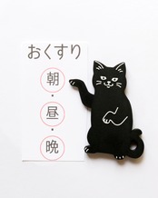 手が動く黒猫の磁石。お薬を飲む時間や、お買い物メモの買い忘れ防止などに!猫の手でチェックしておける便利なアイテムです。