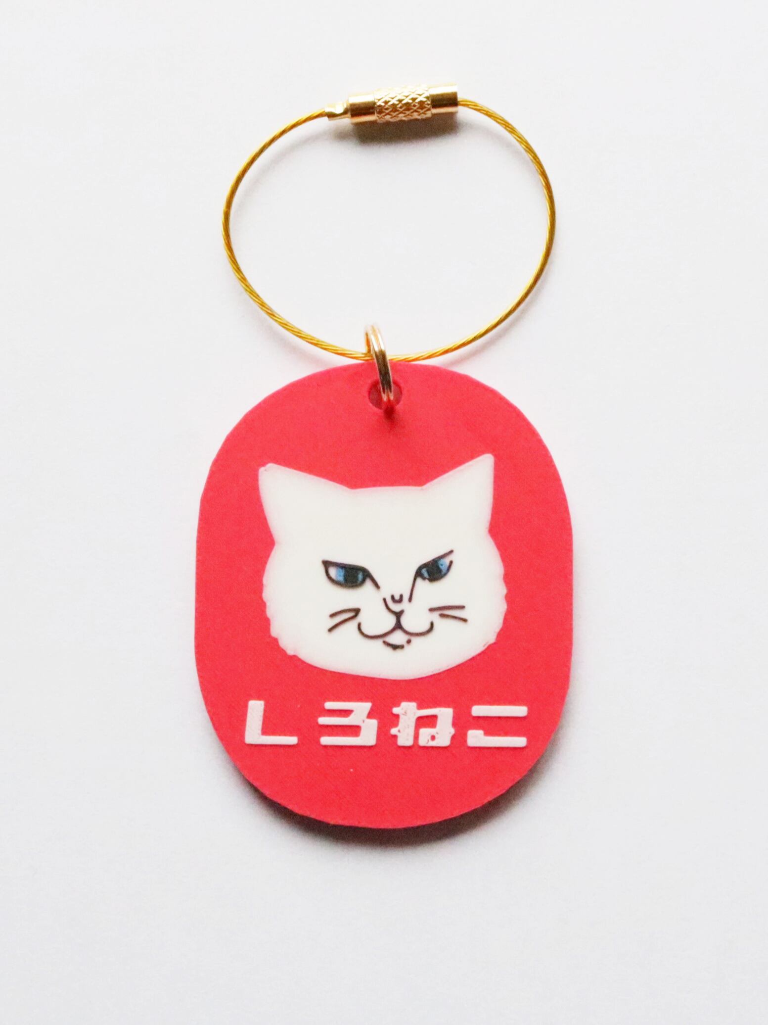 ワイヤーキーリング付きのキーホルダー。猫社謹製さんのオリジナルデザイン。