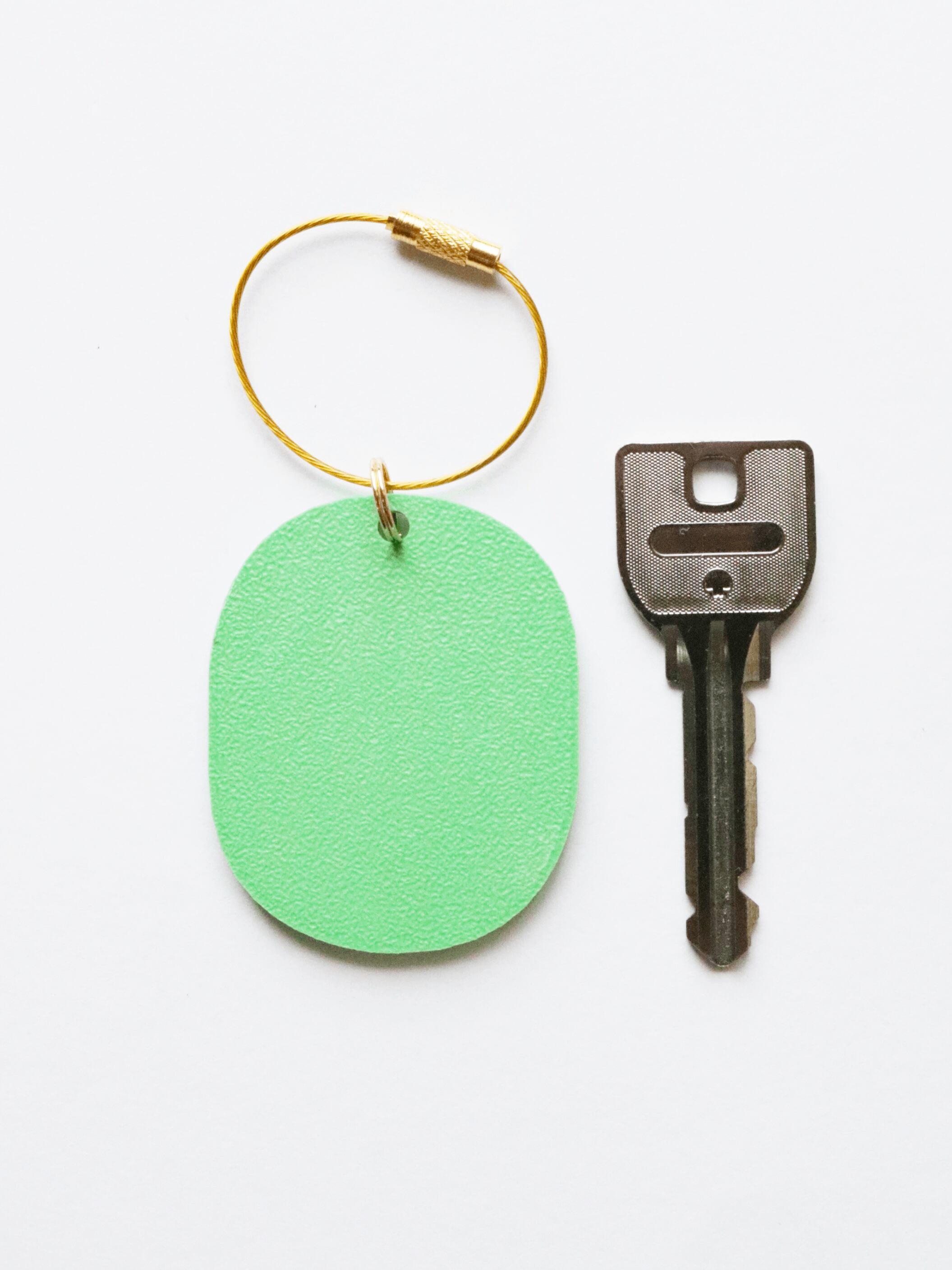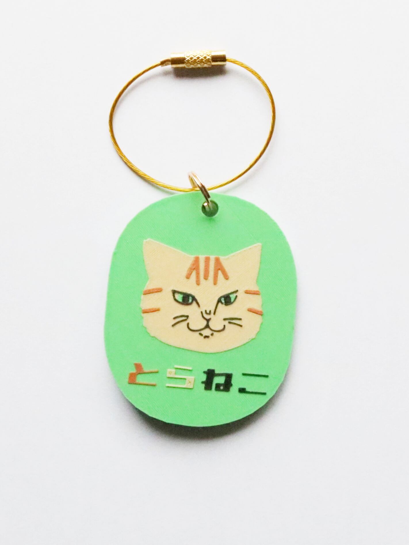 ワイヤーキーリング付きのキーホルダー。猫社謹製さんのオリジナルデザイン。