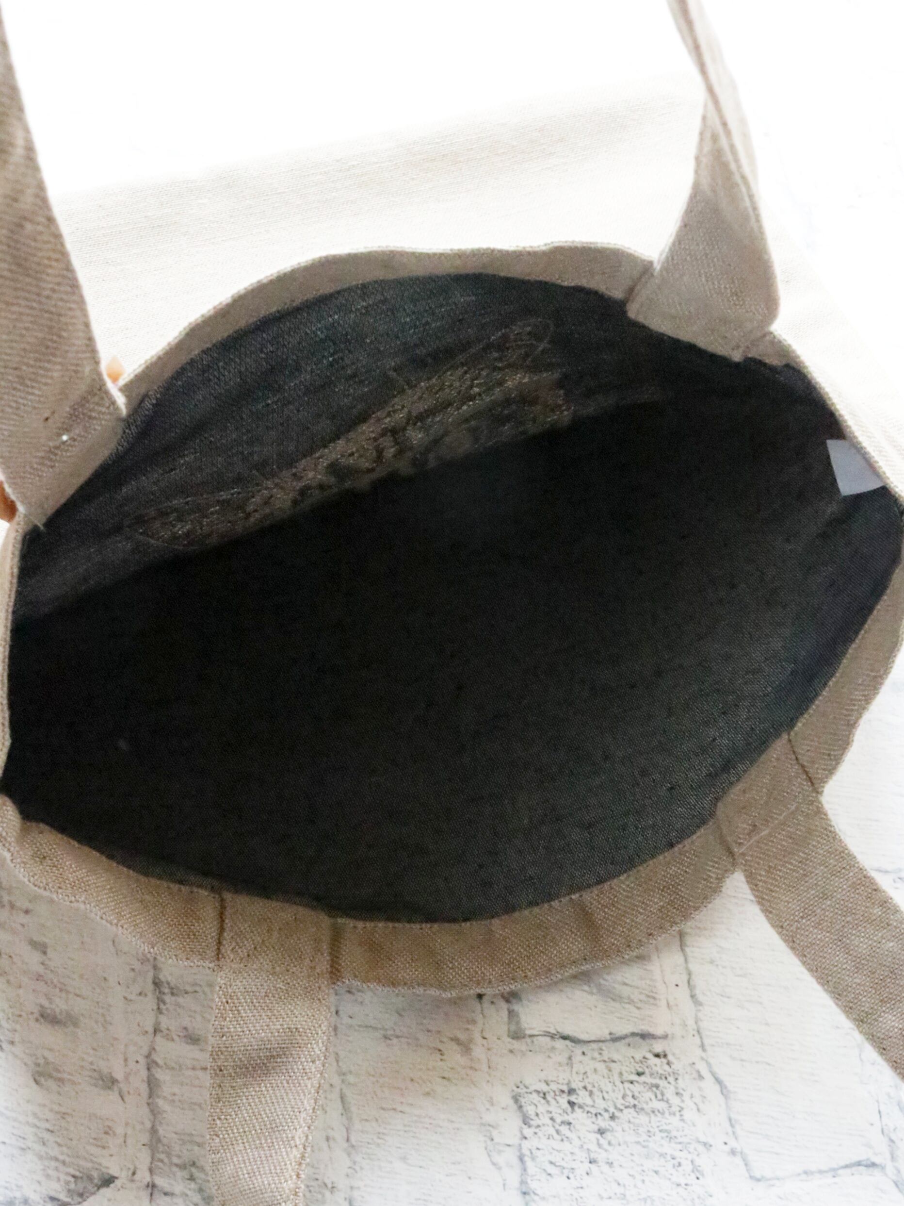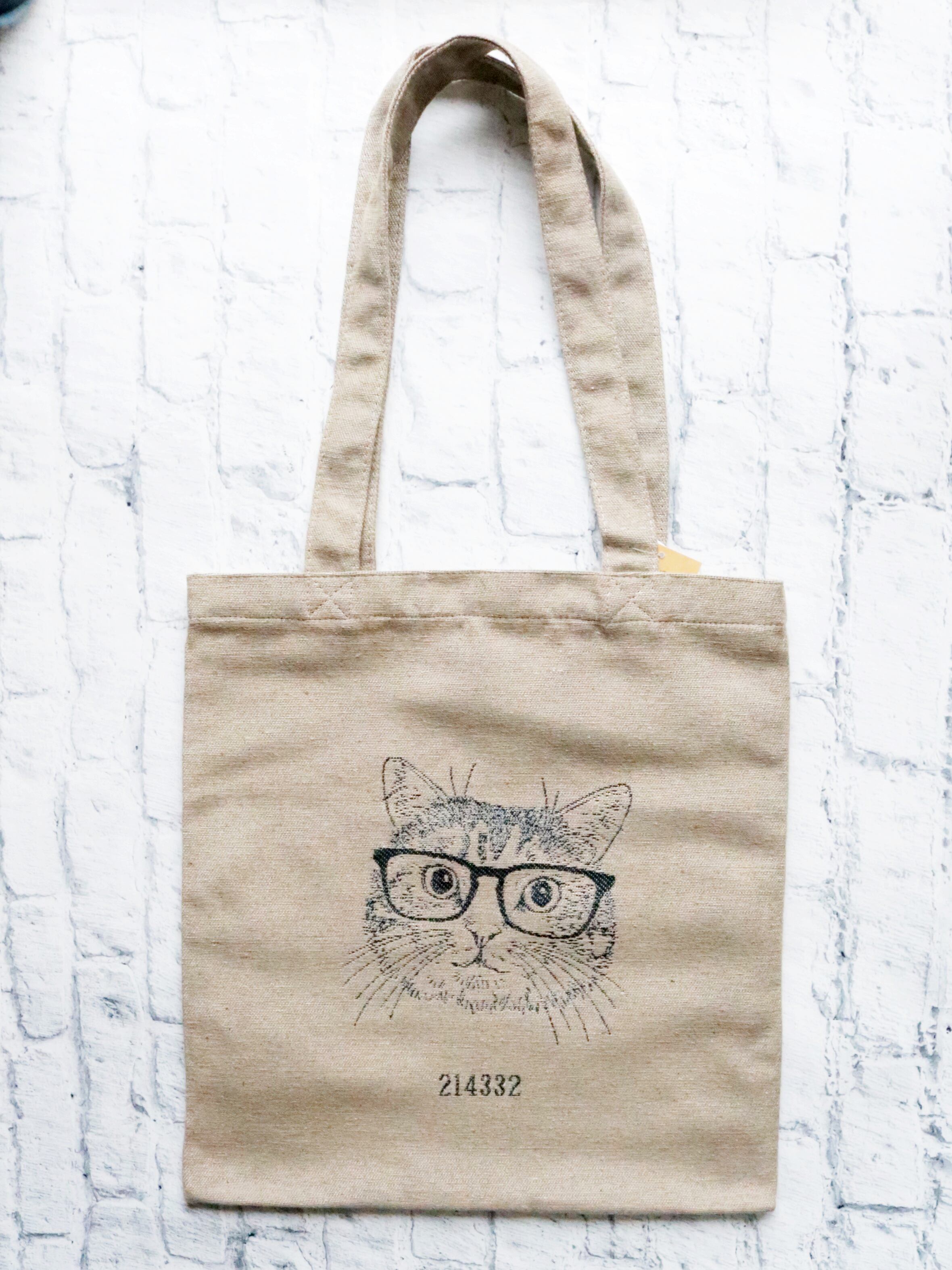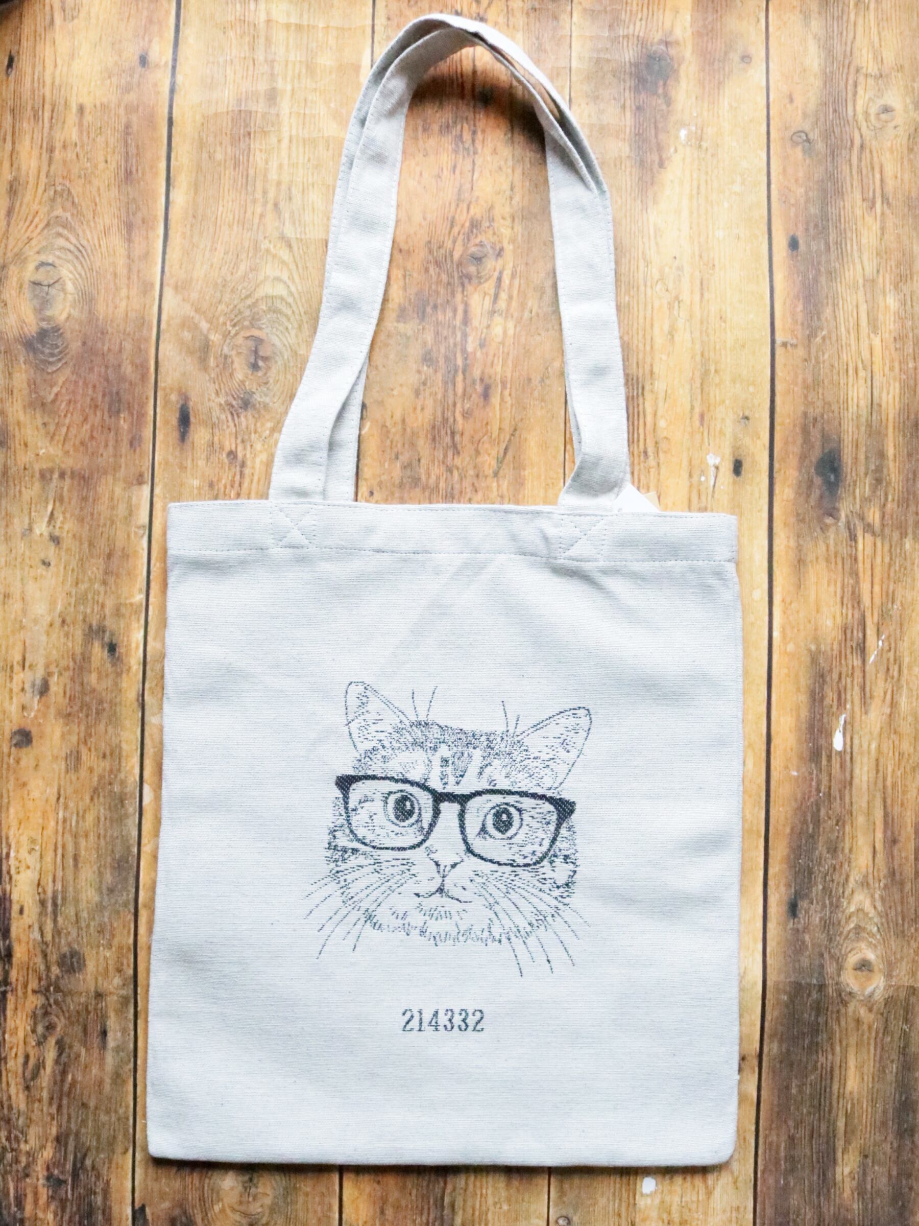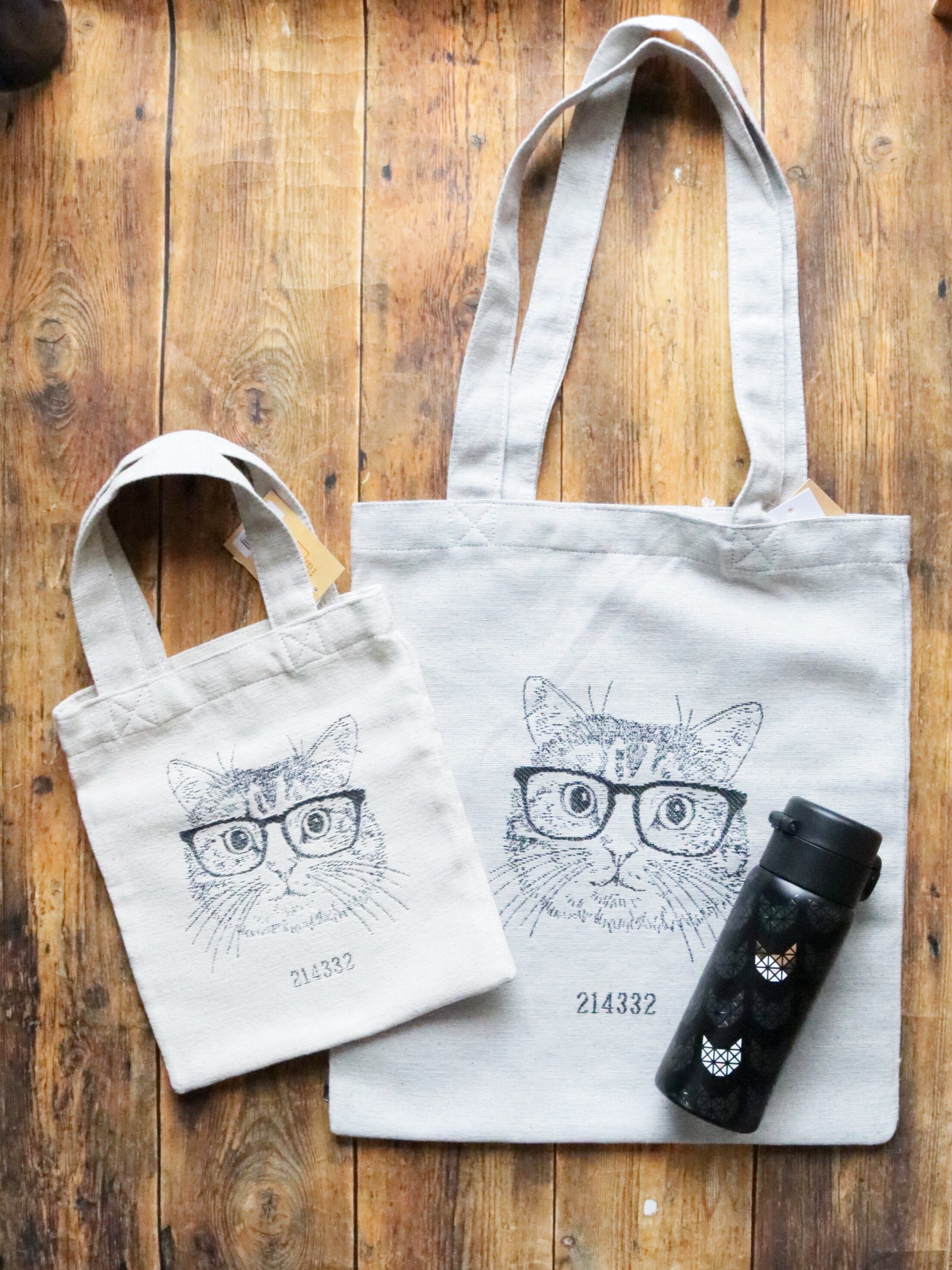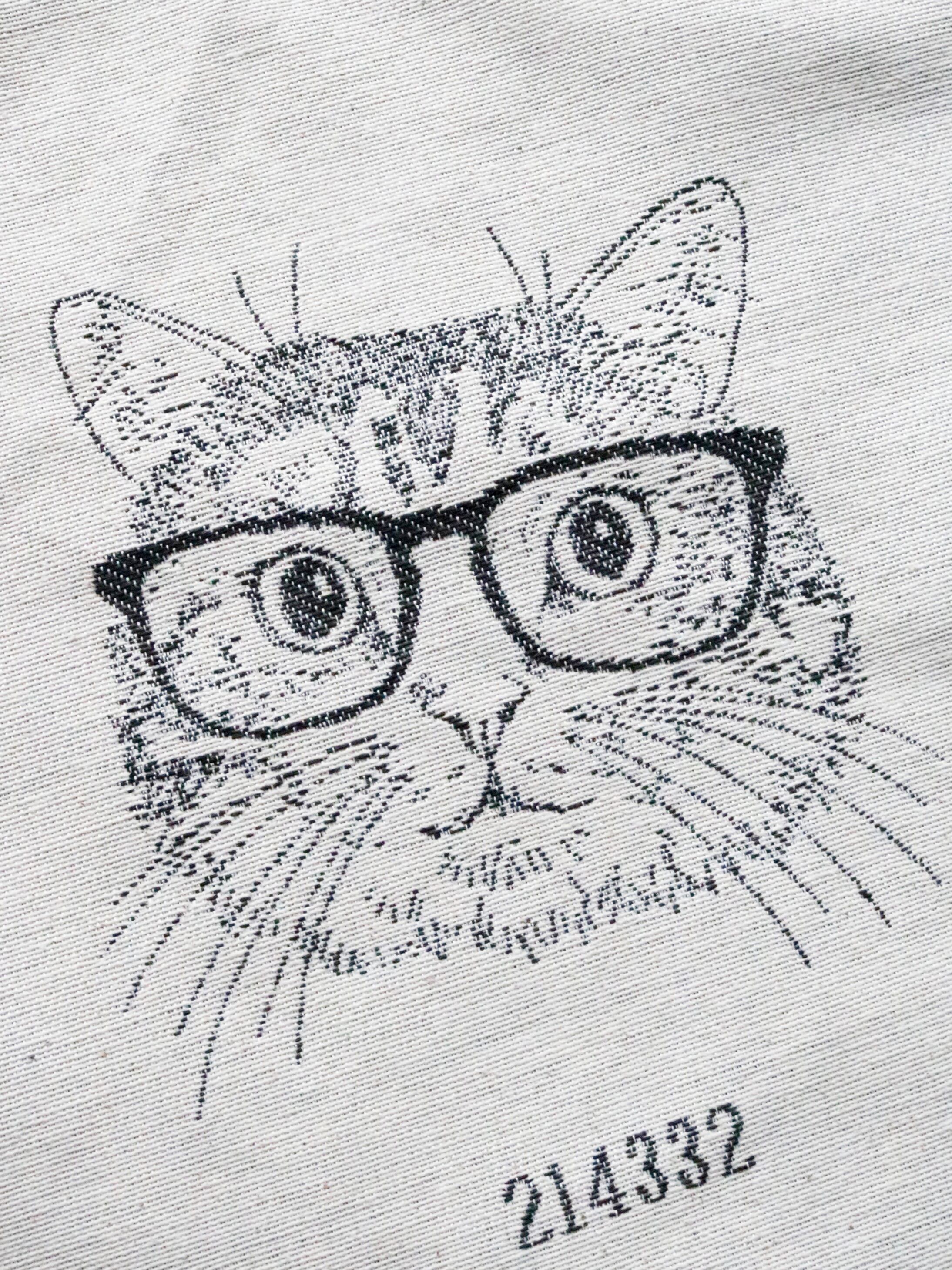 シンプルでナチュラルな風合いのジャガードバッグ。メガネ猫がオシャレ!