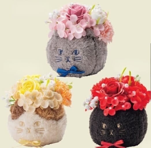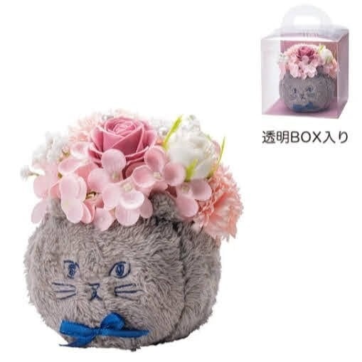 ふわふわネコポット ソープフラワー