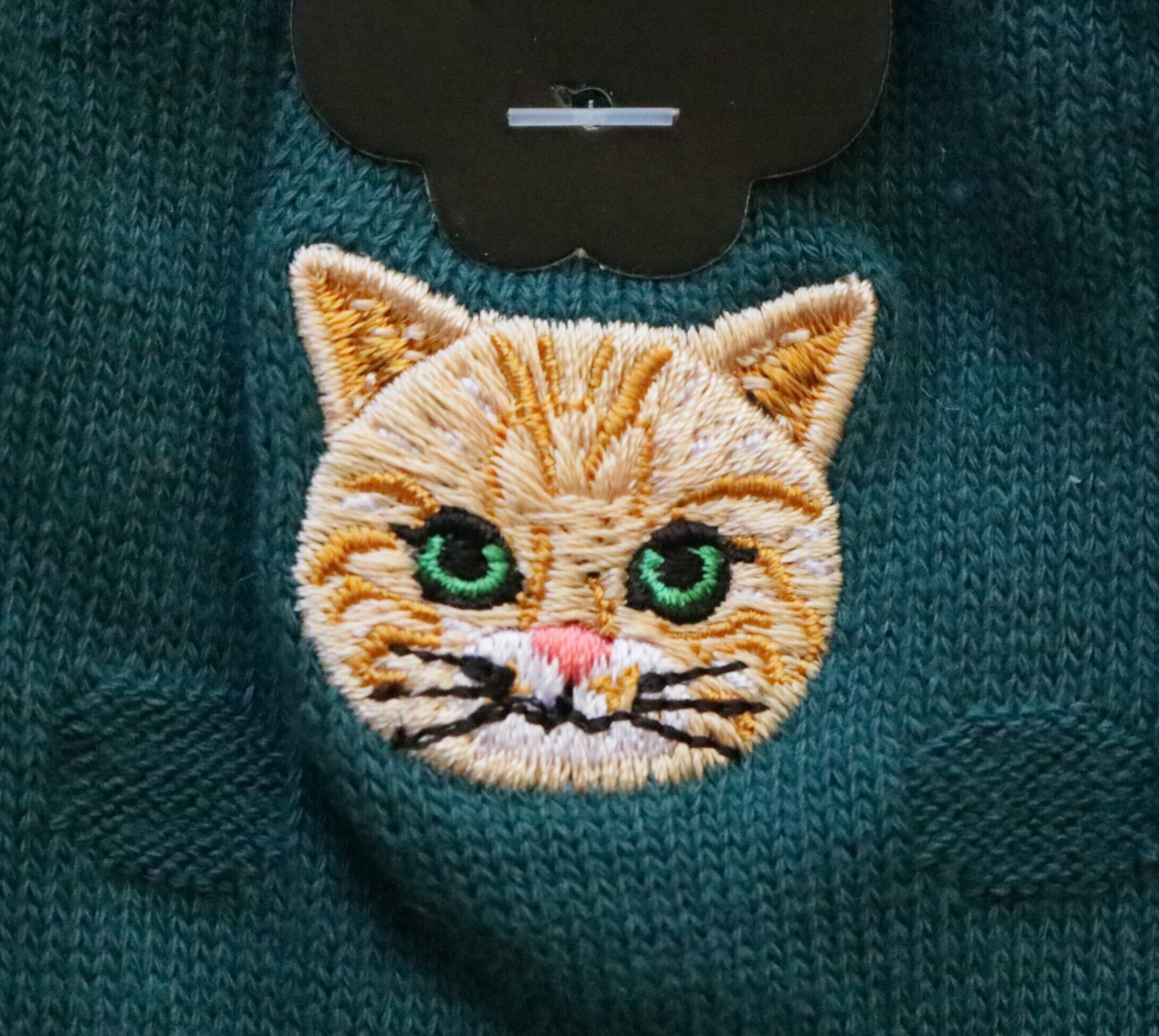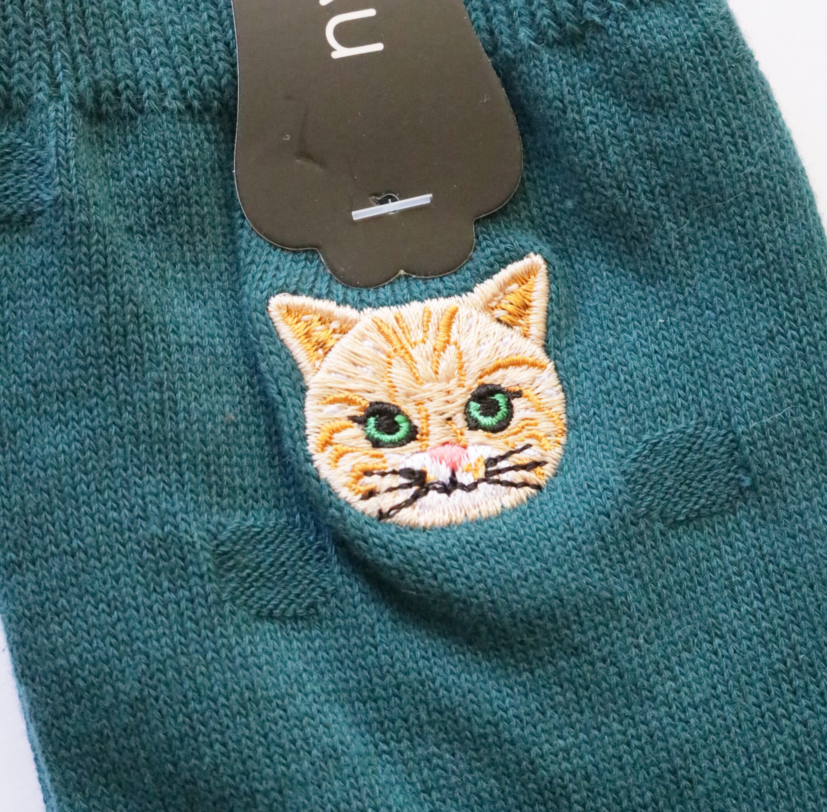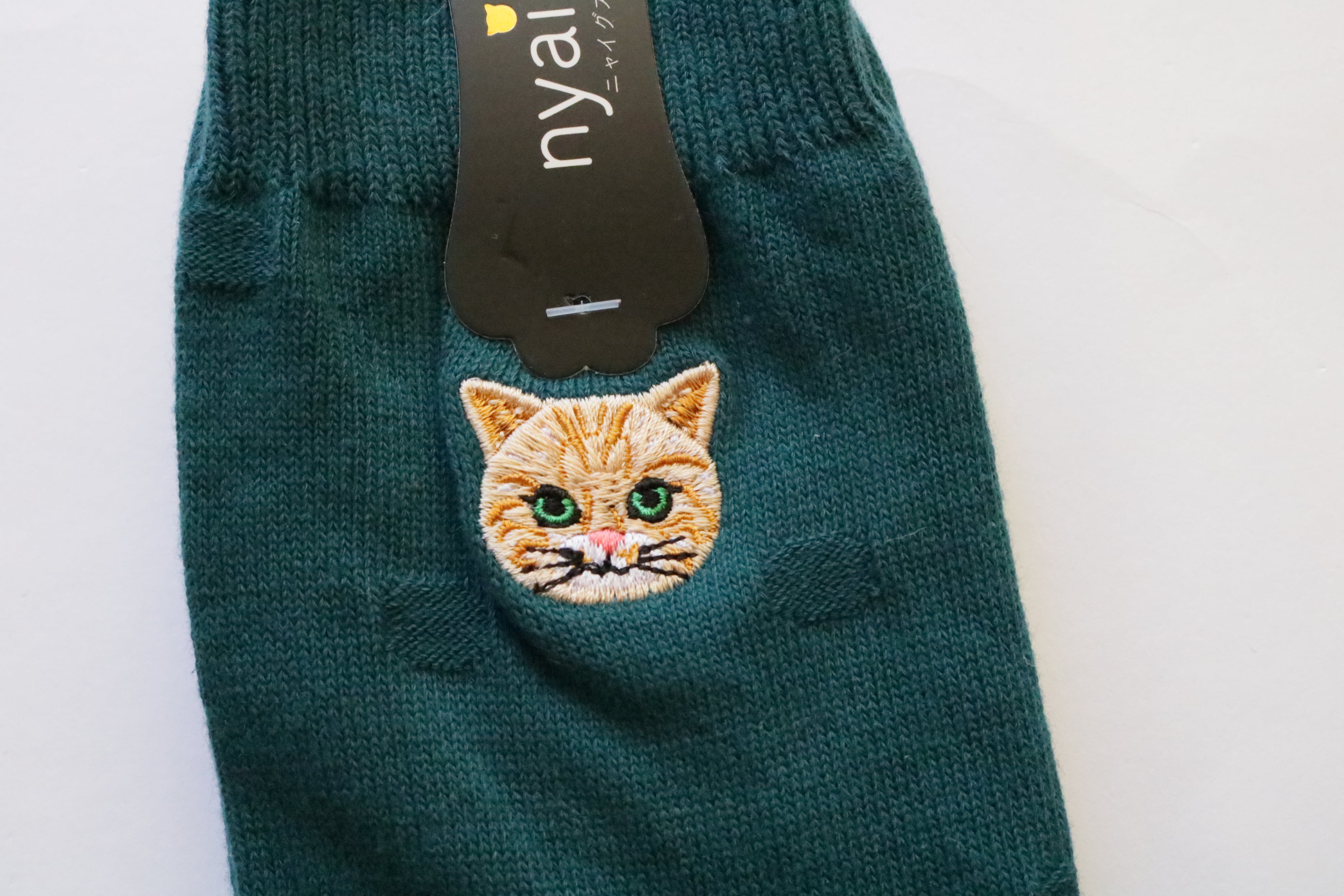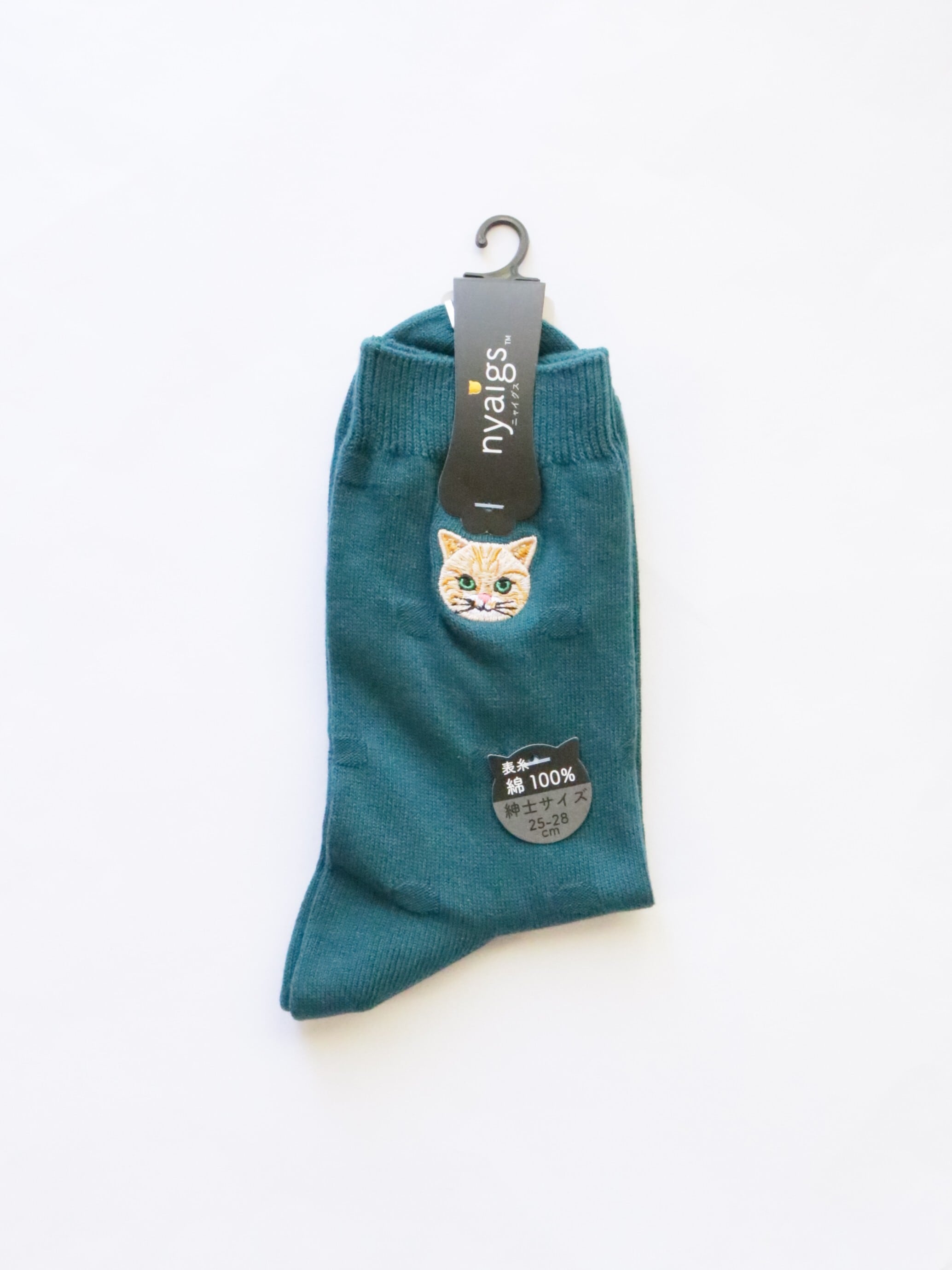 猫の刺繍が施された紳士用靴下。猫好きな男性へのちょっとした贈り物に最適です。