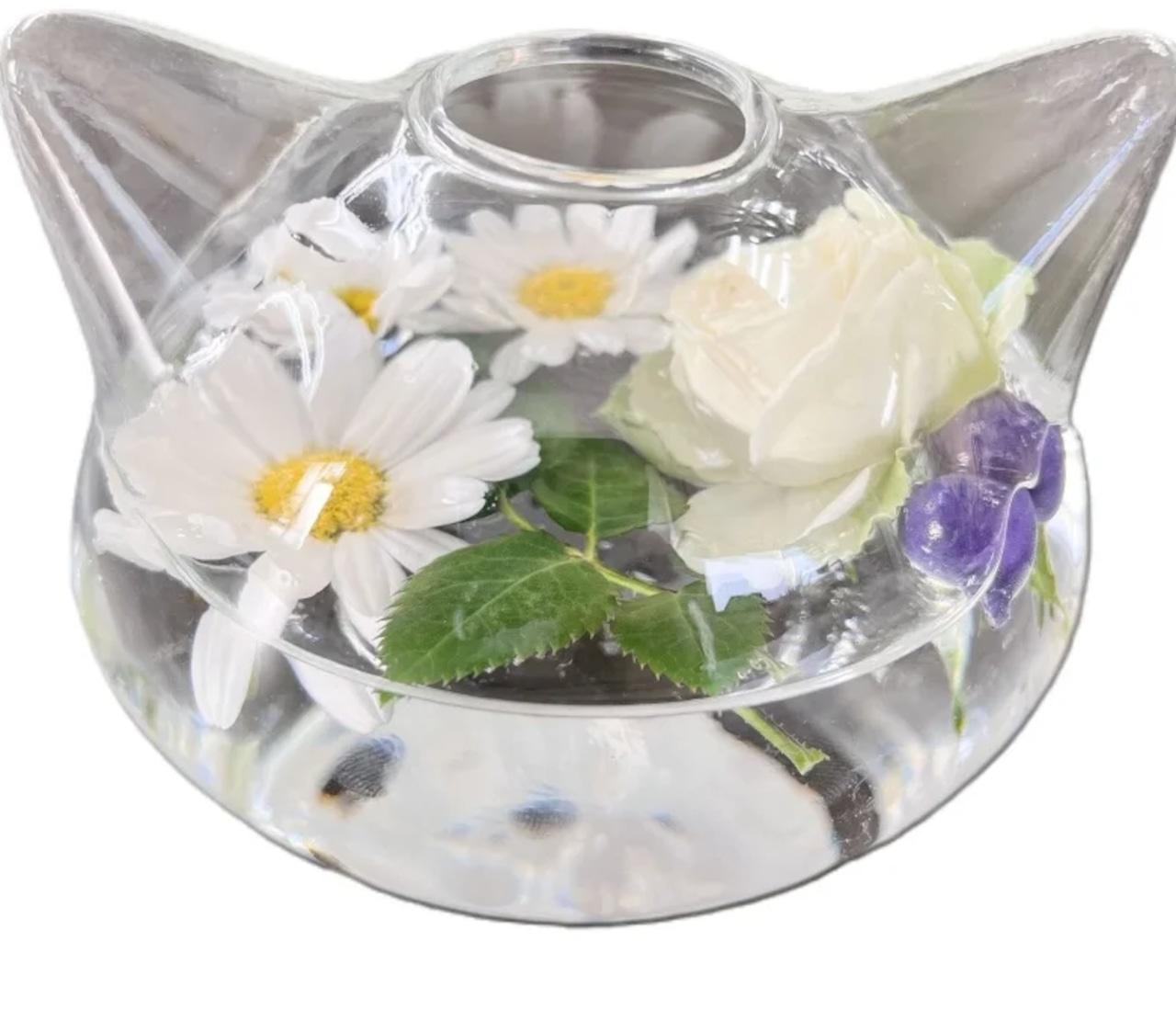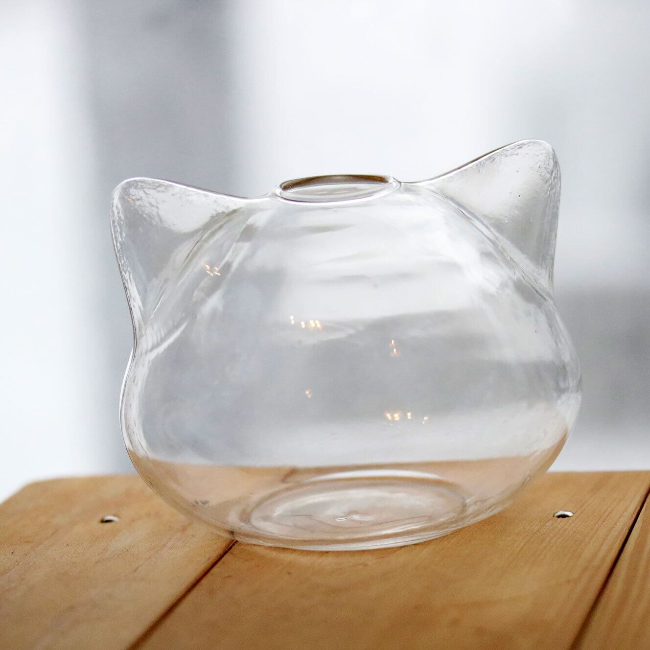 猫顔のフラワーベース。花瓶としてはもちろん、そのままディスプレイしておくだけでも♪