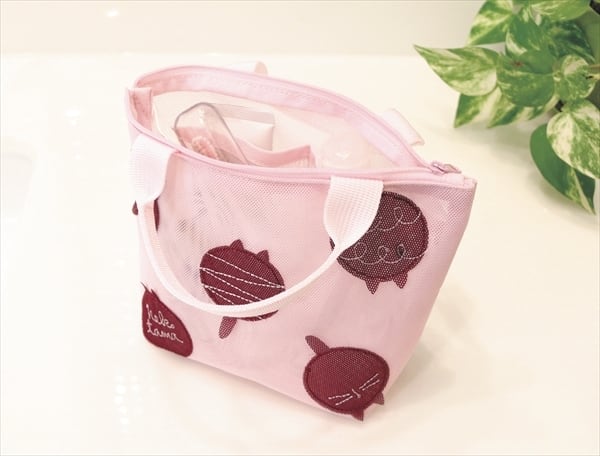 濡れても安心!湿気がこもらないメッシュ素材のミニバッグ♪小さな耳や尻尾が可愛いネコドット。ジムや温泉などに。